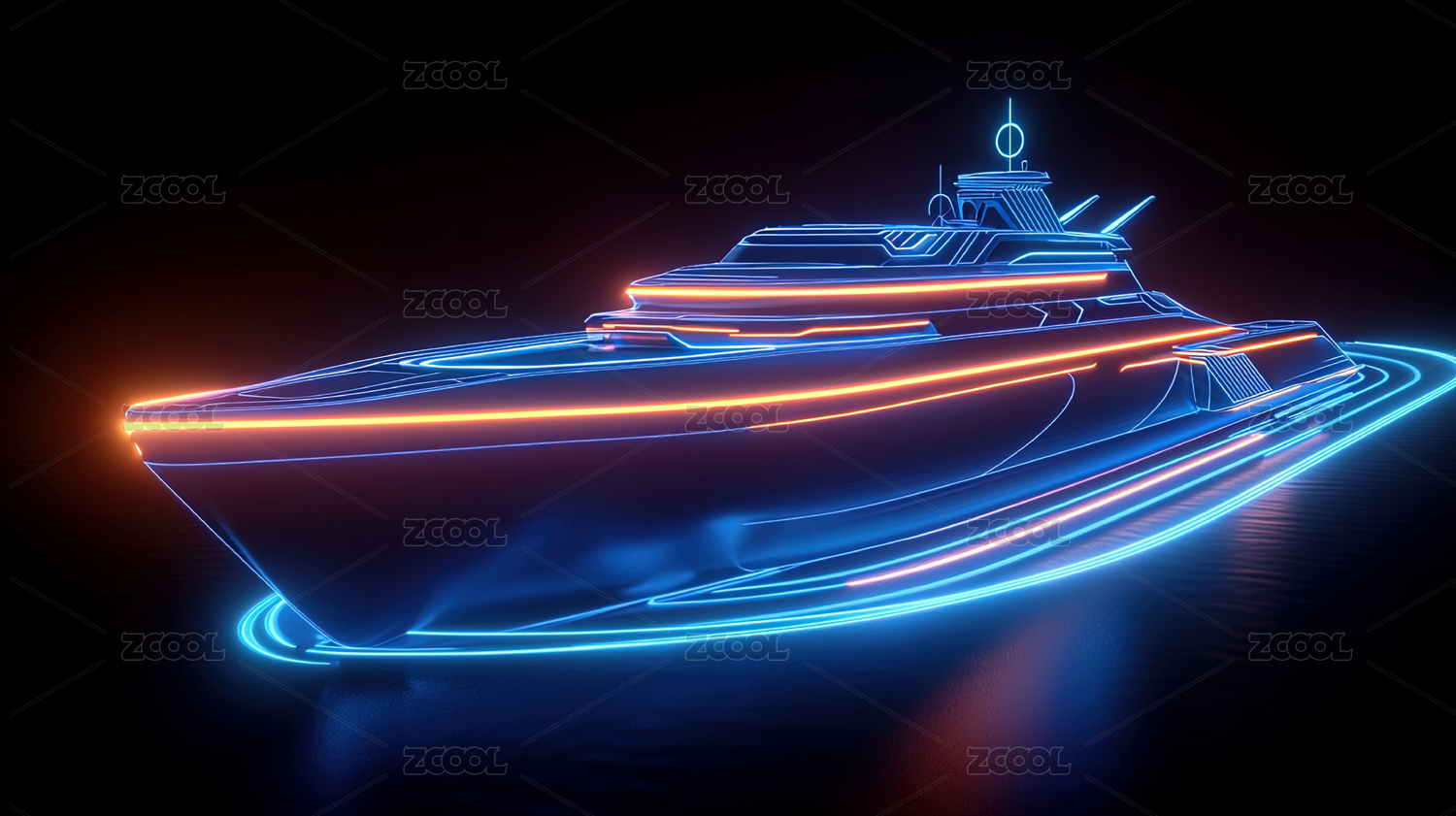 炫酷游艇夜景