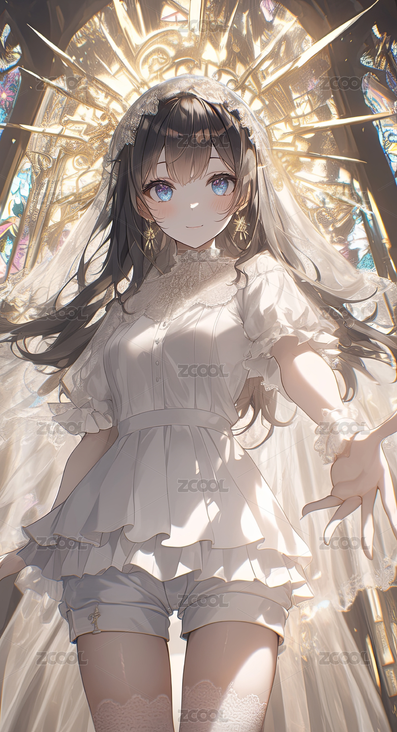 金色光环中的动漫女孩