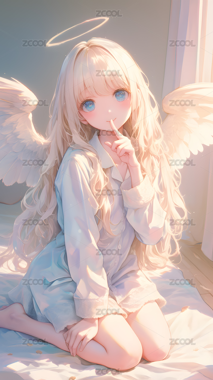 白发天使少女梦幻插画