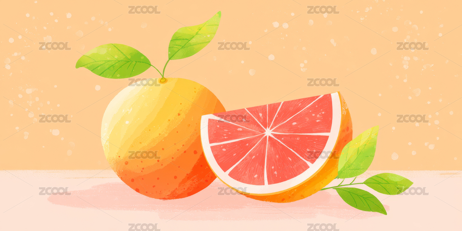 白背景带叶子的成熟的橘子手绘扁平水彩插画