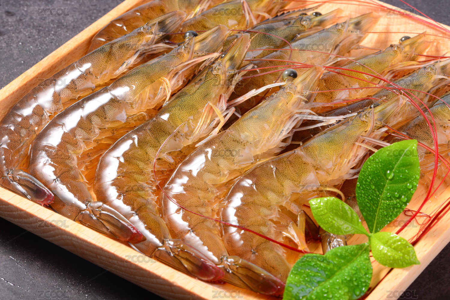 黑底上放着一盘鲜活基围虾