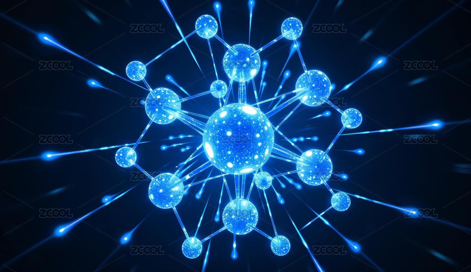 深蓝色背景下的蓝色发光玻璃圆球抽象背景