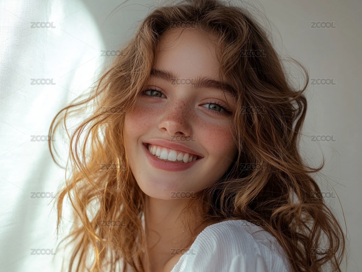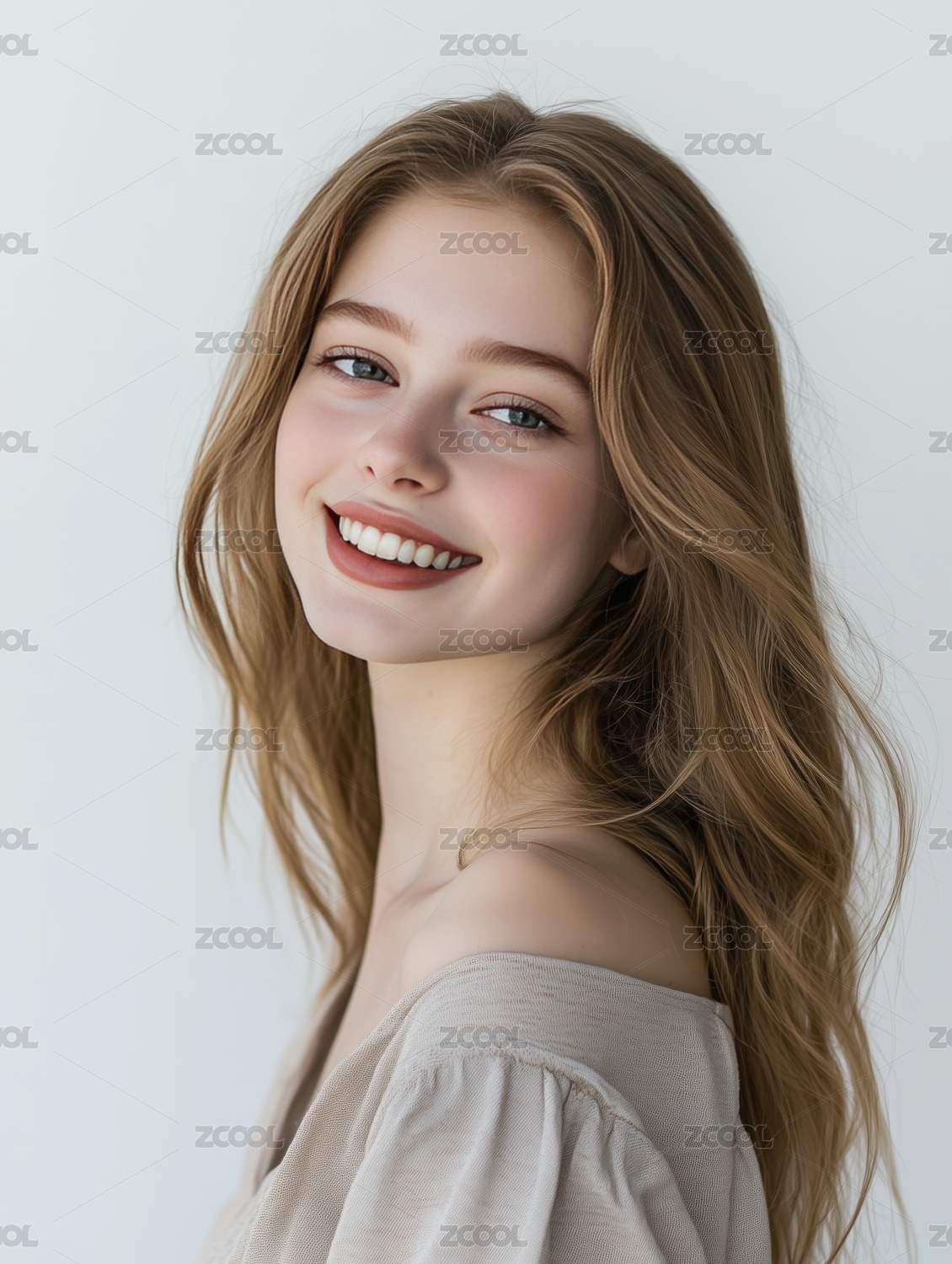 白色背景中的欧美长发美女