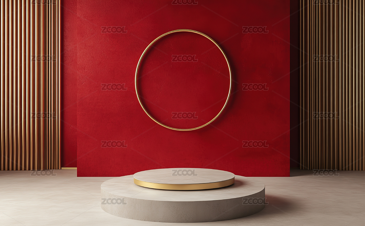 金色圆台红色背景