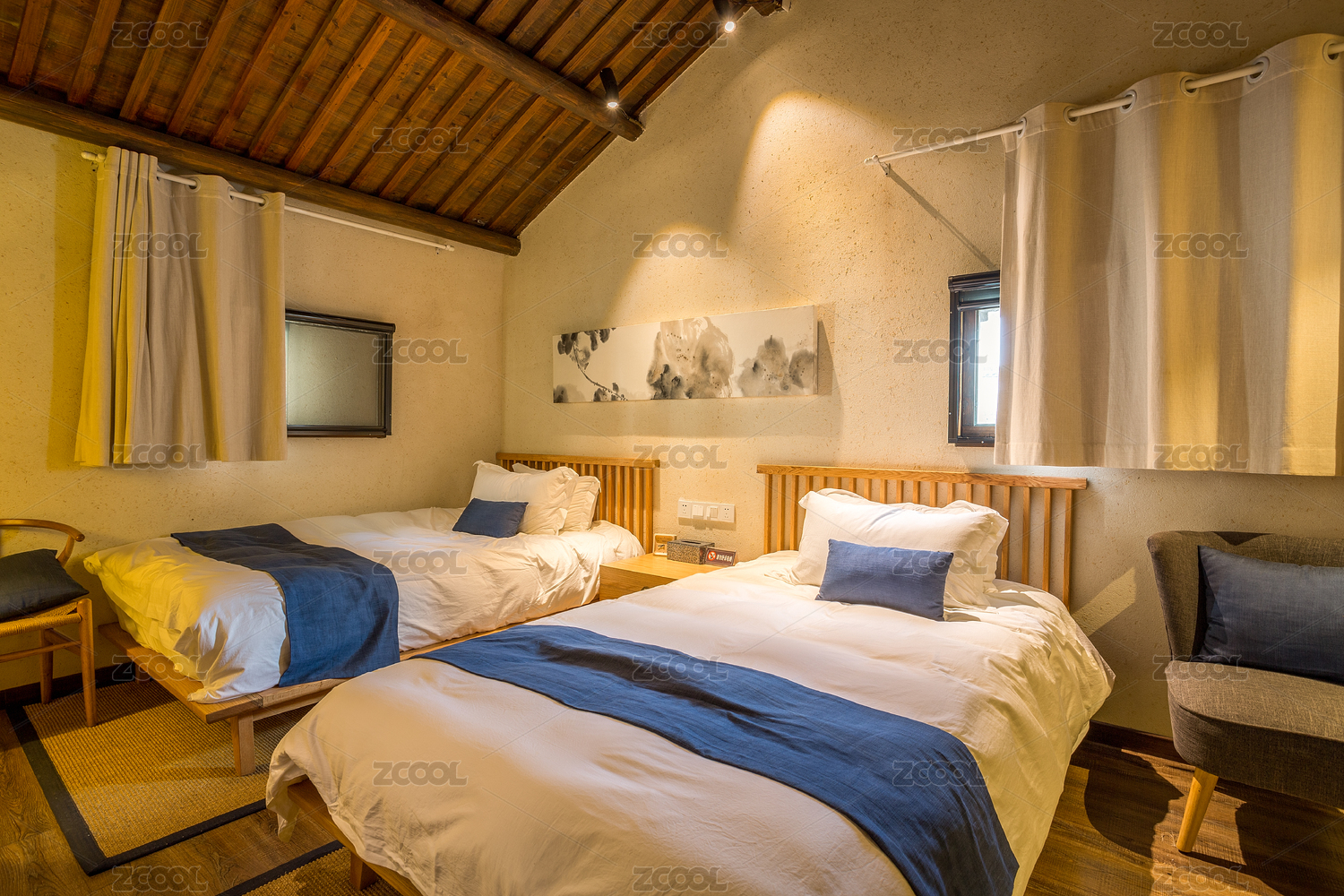 新中式日式北欧风酒店内部房间装修大图