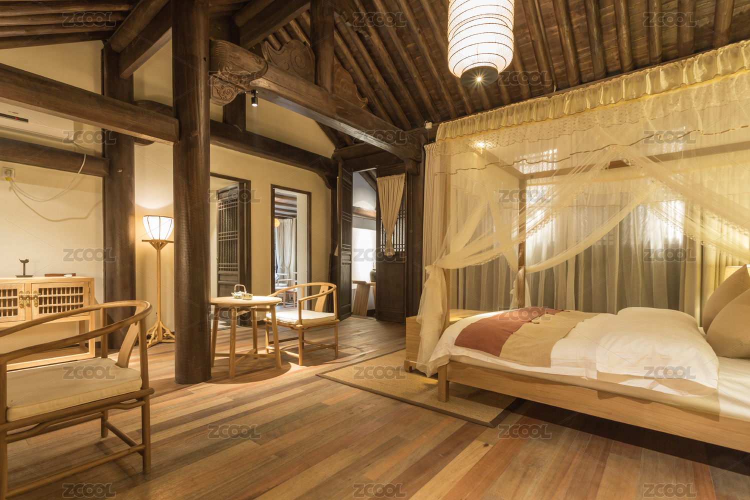 中式复古舒适的卧室起居室