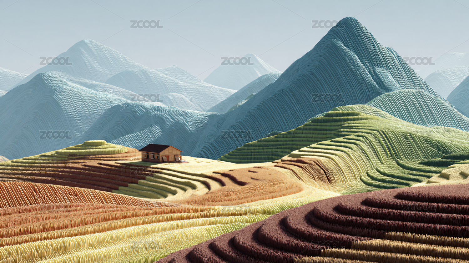 梯田,金黄色,山丘,树木,小屋,自然,景观,秋天,乡村,宁静