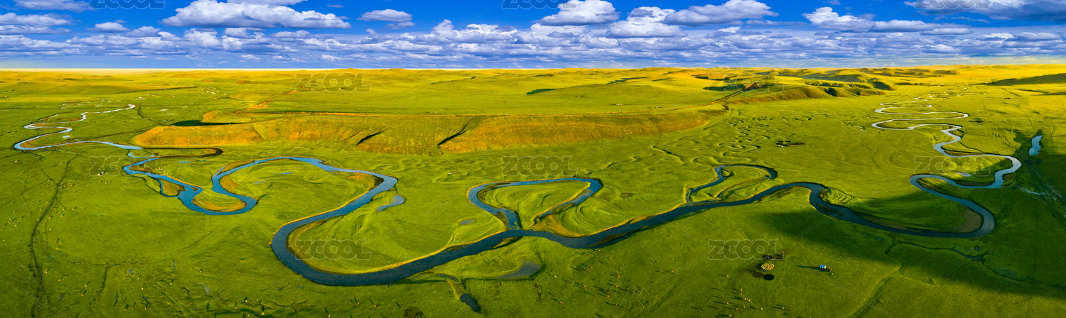 甘肃甘南黄河大草原玛曲阿万仓湿地蜿蜒河流