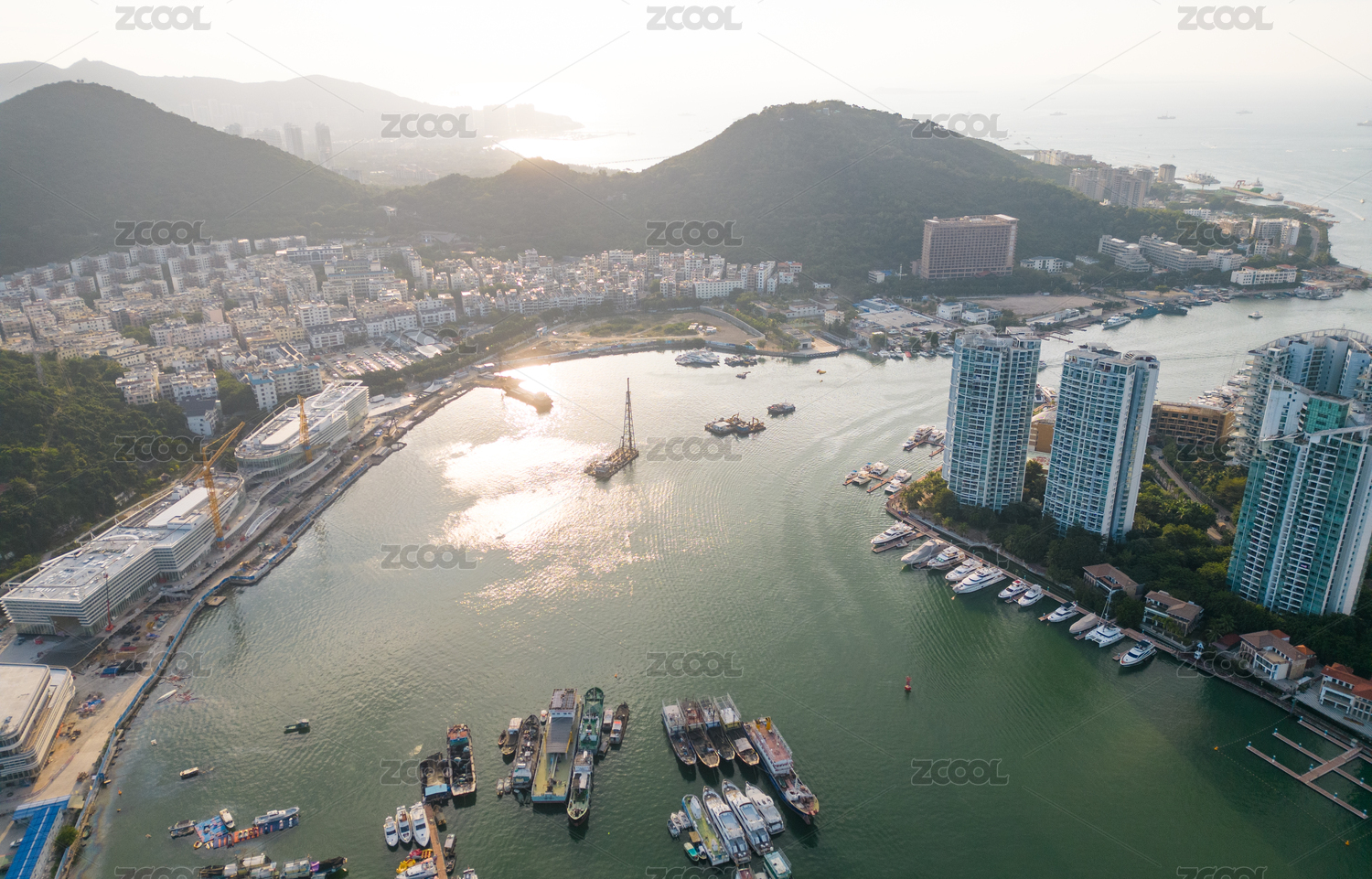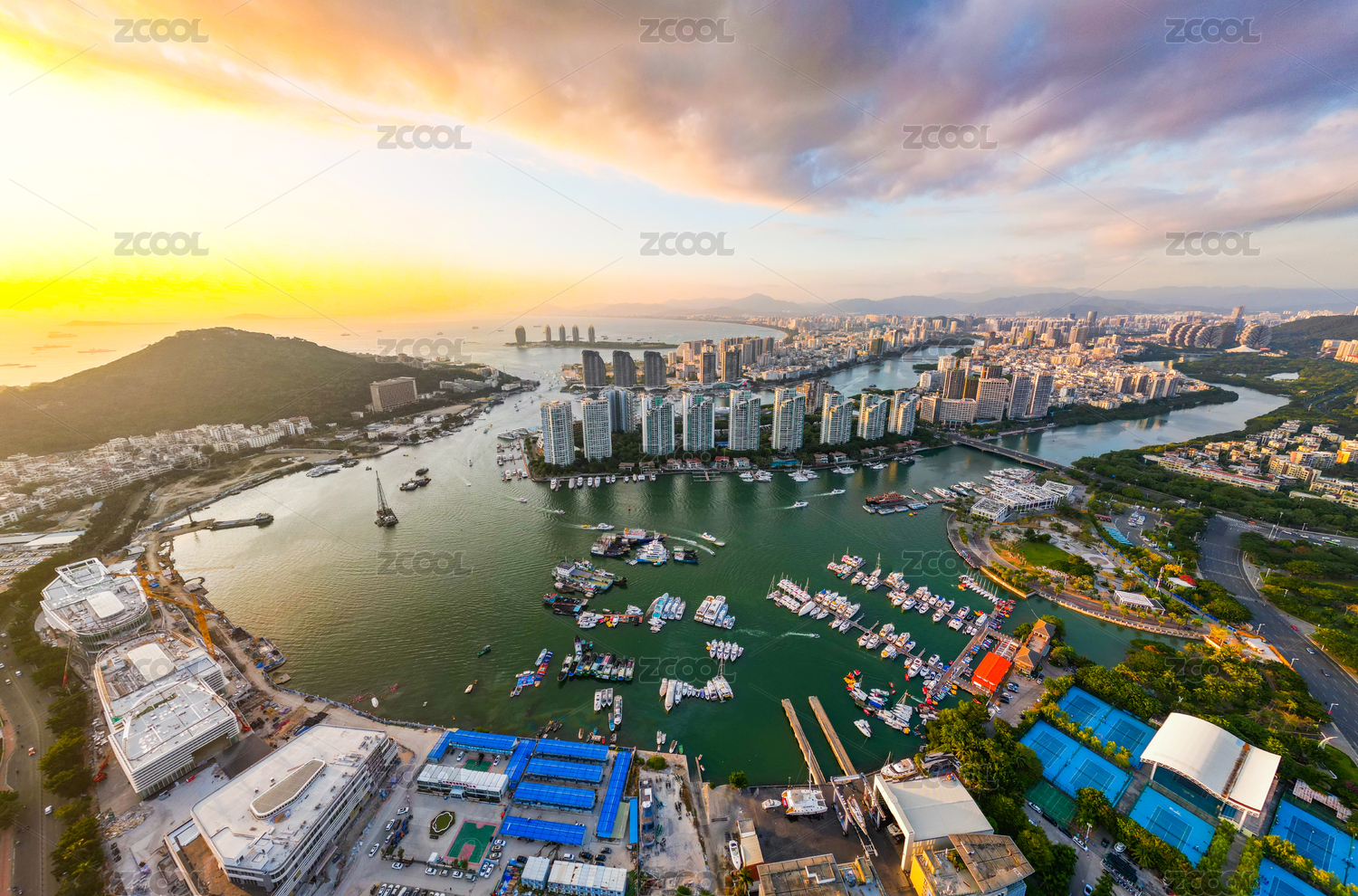三亚三亚湾游艇码头及周边大东海城市风景航