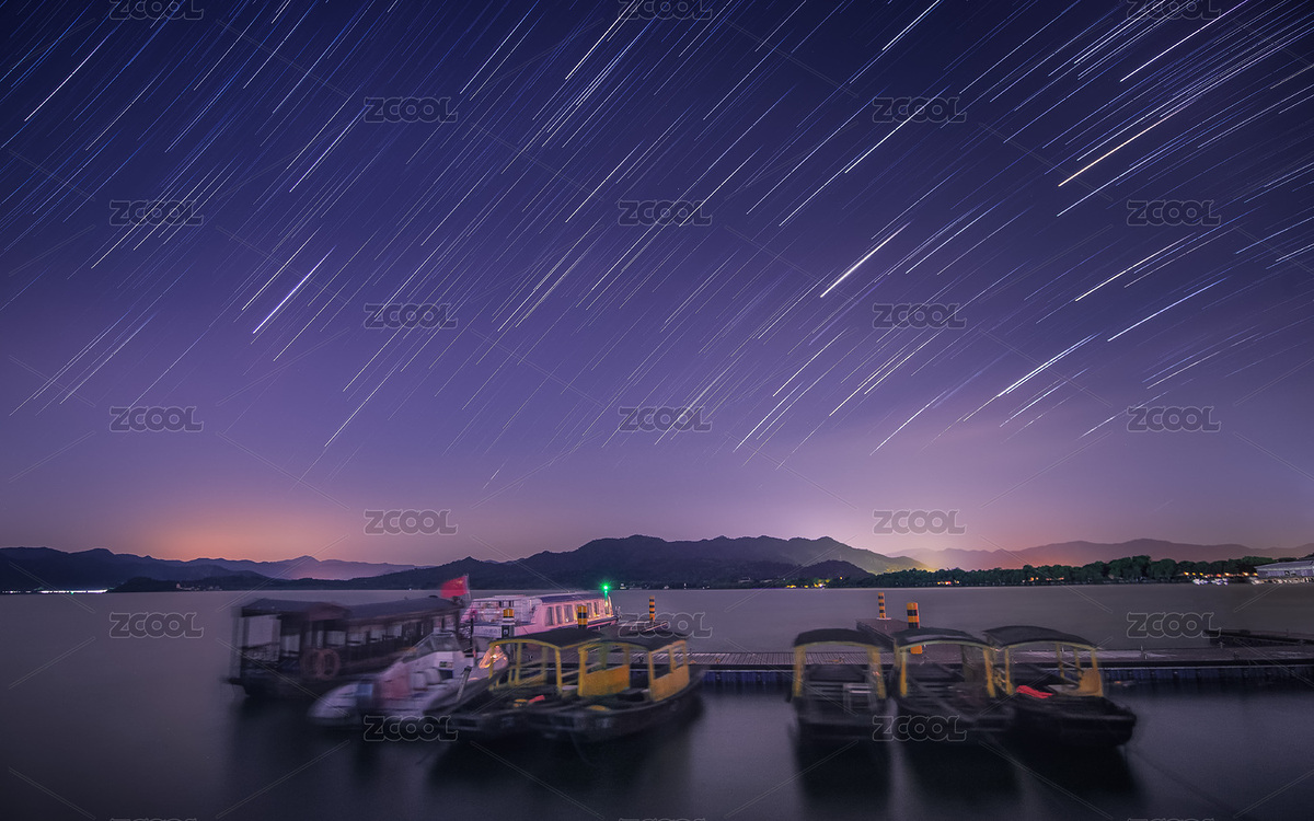 中国浙江杭州淳安县千岛湖夏季夜晚星轨自然风光