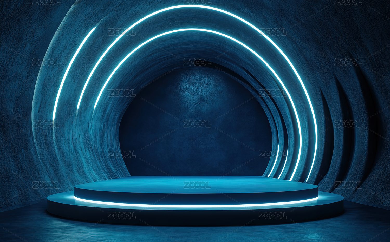 蓝色舞台,环形阶梯,灯光照射,炫酷背景