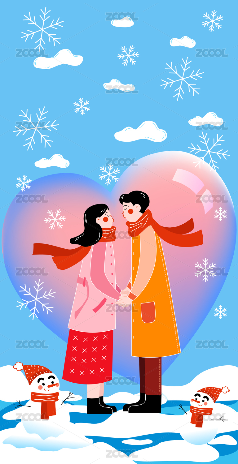 大雪冬季情人节情侣插画