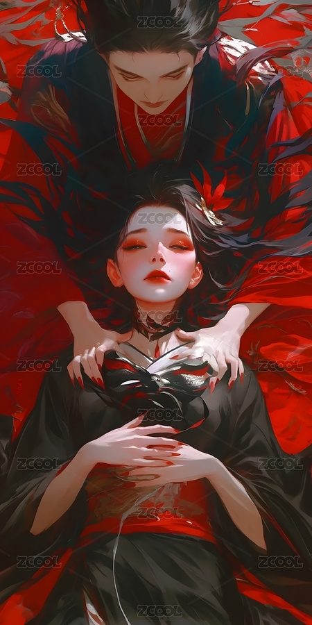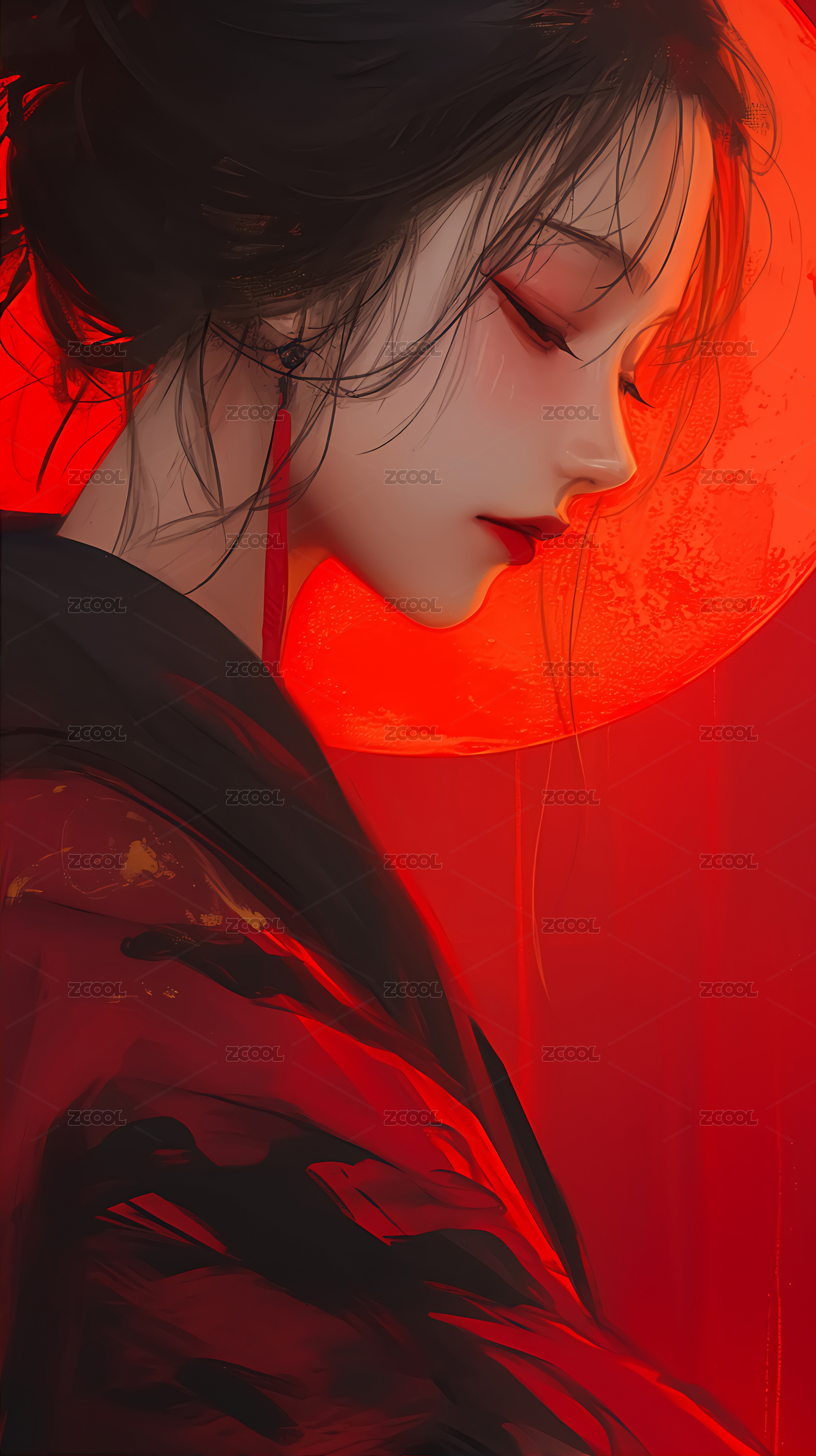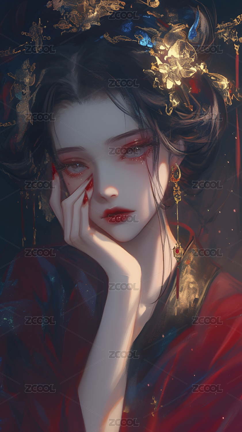 黑发红饰的神秘女子
