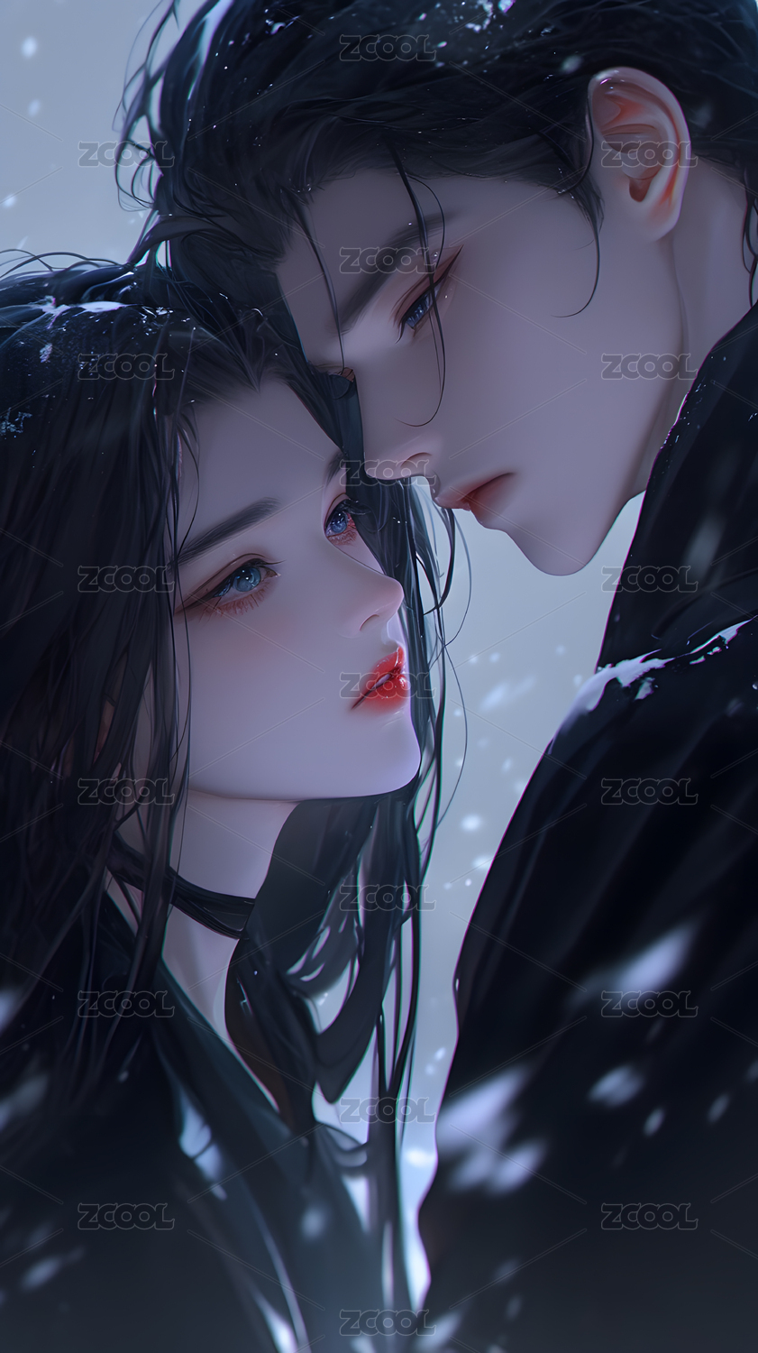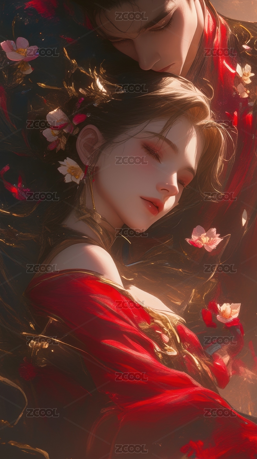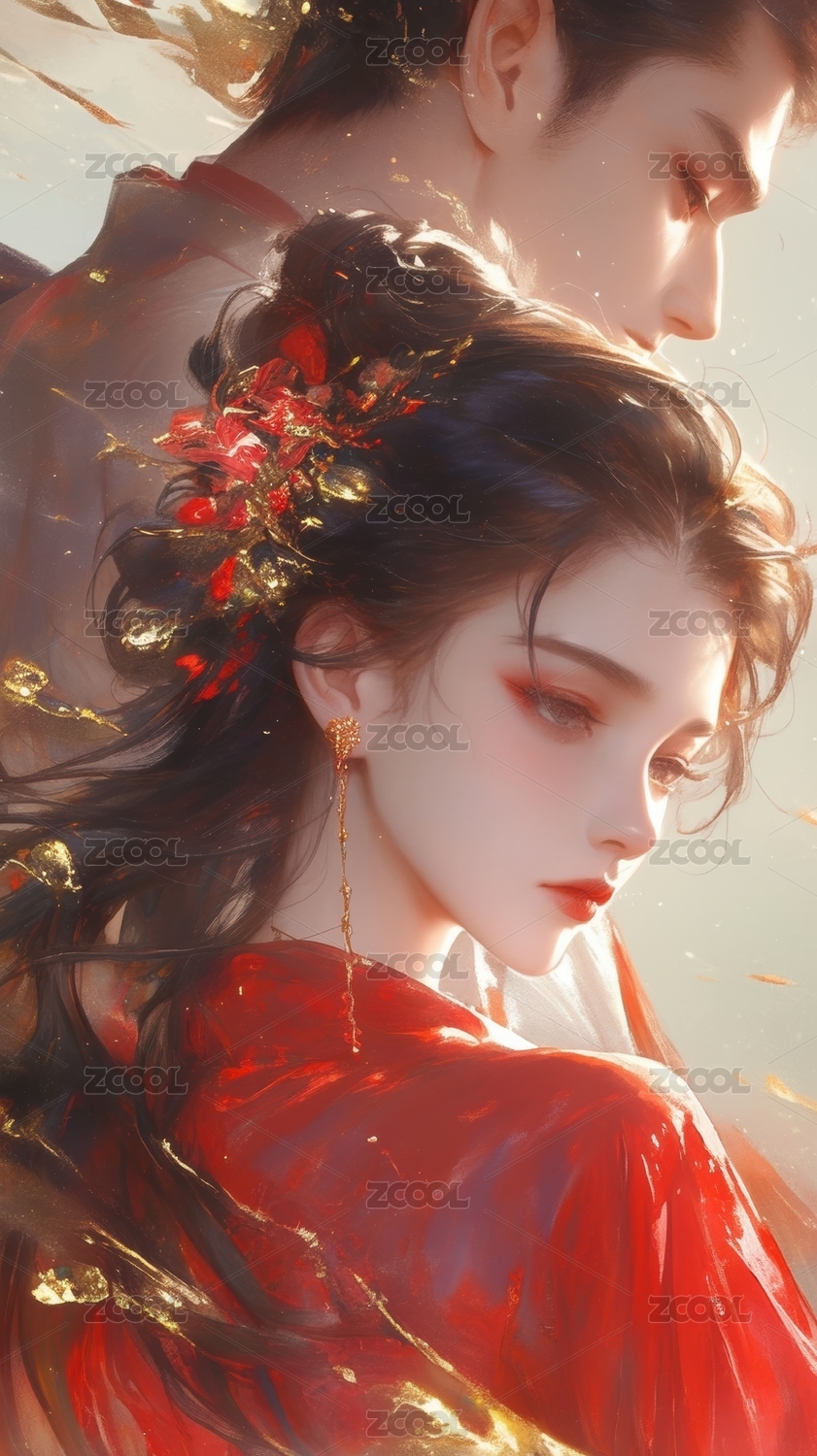 红衣女子与男子的古典艺术肖像
