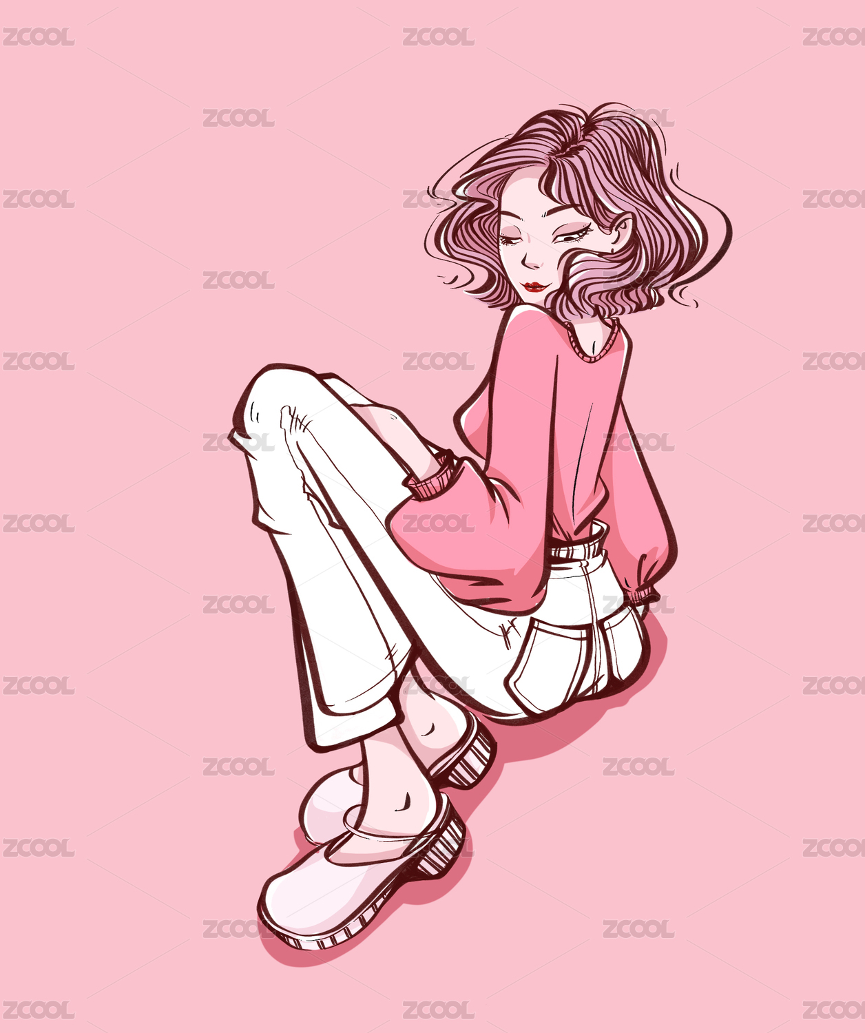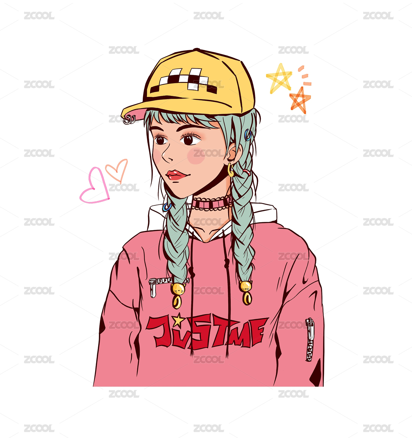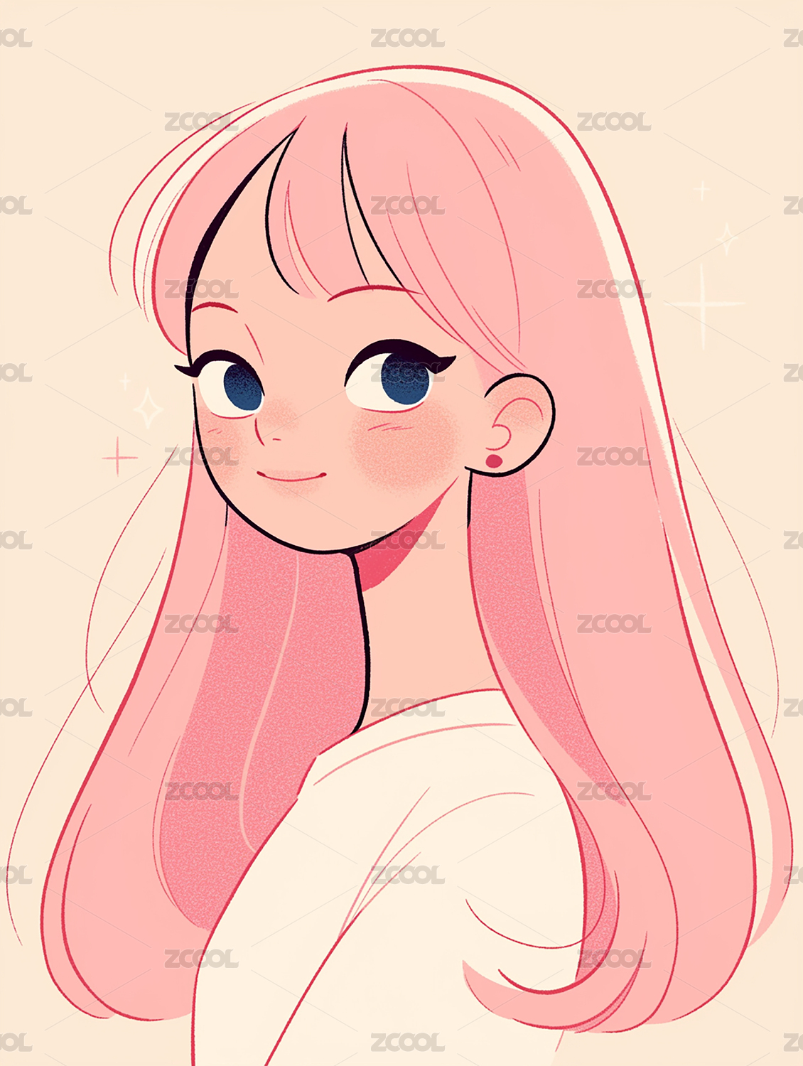 粉色头发的可爱女孩,插画