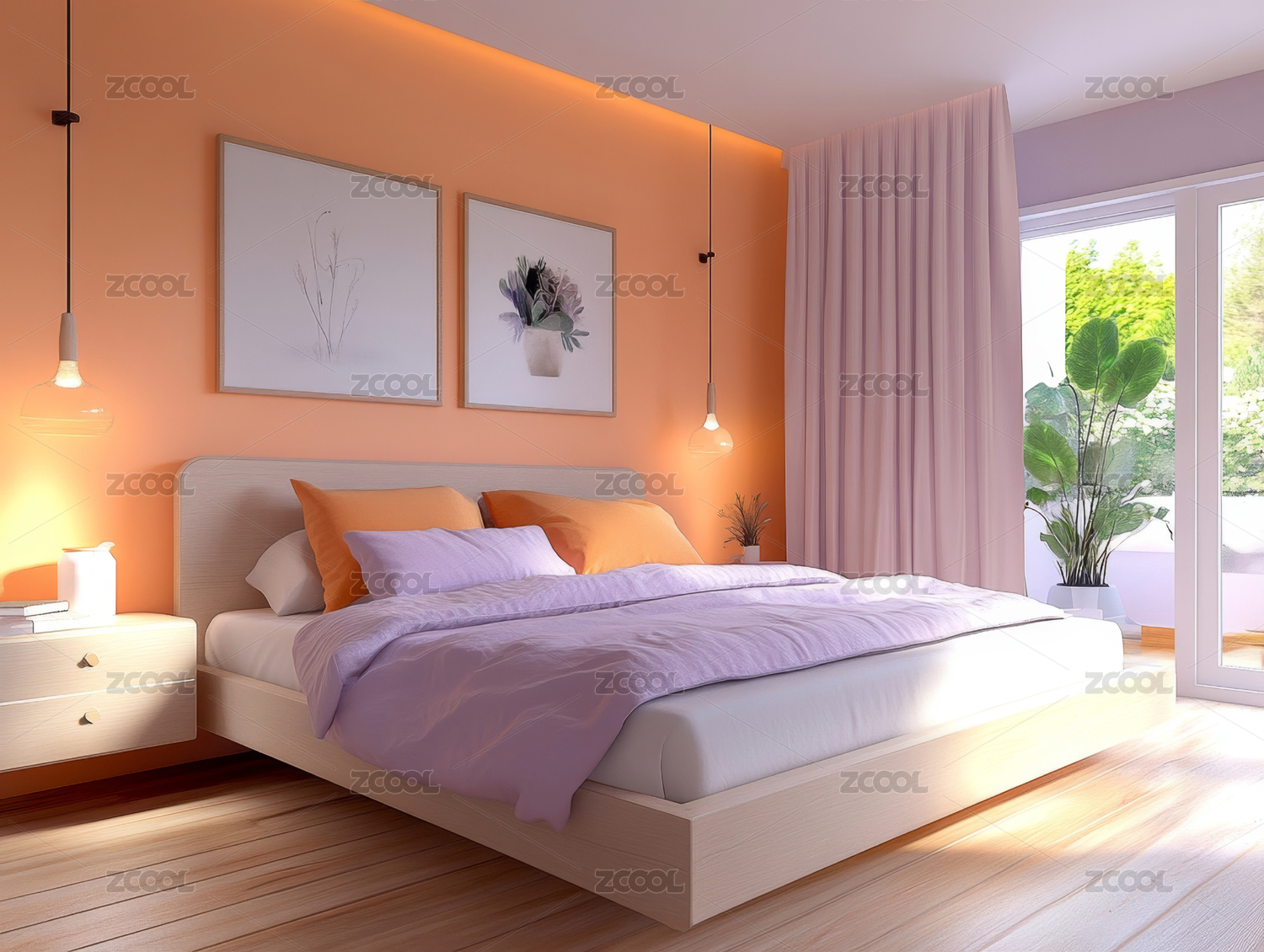 现代,简约,卧室,吊灯,植物,地毯,舒适,设计,时尚,休闲