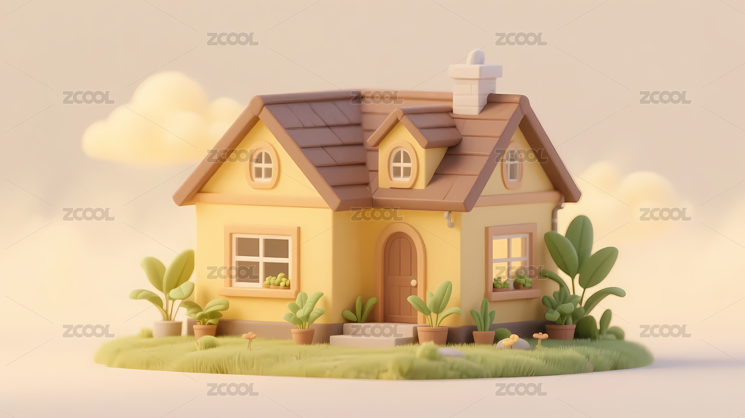 房子,绿色,草地,蓝色,橙色,黄色沙发,白色冰箱,黑色,电视,红色