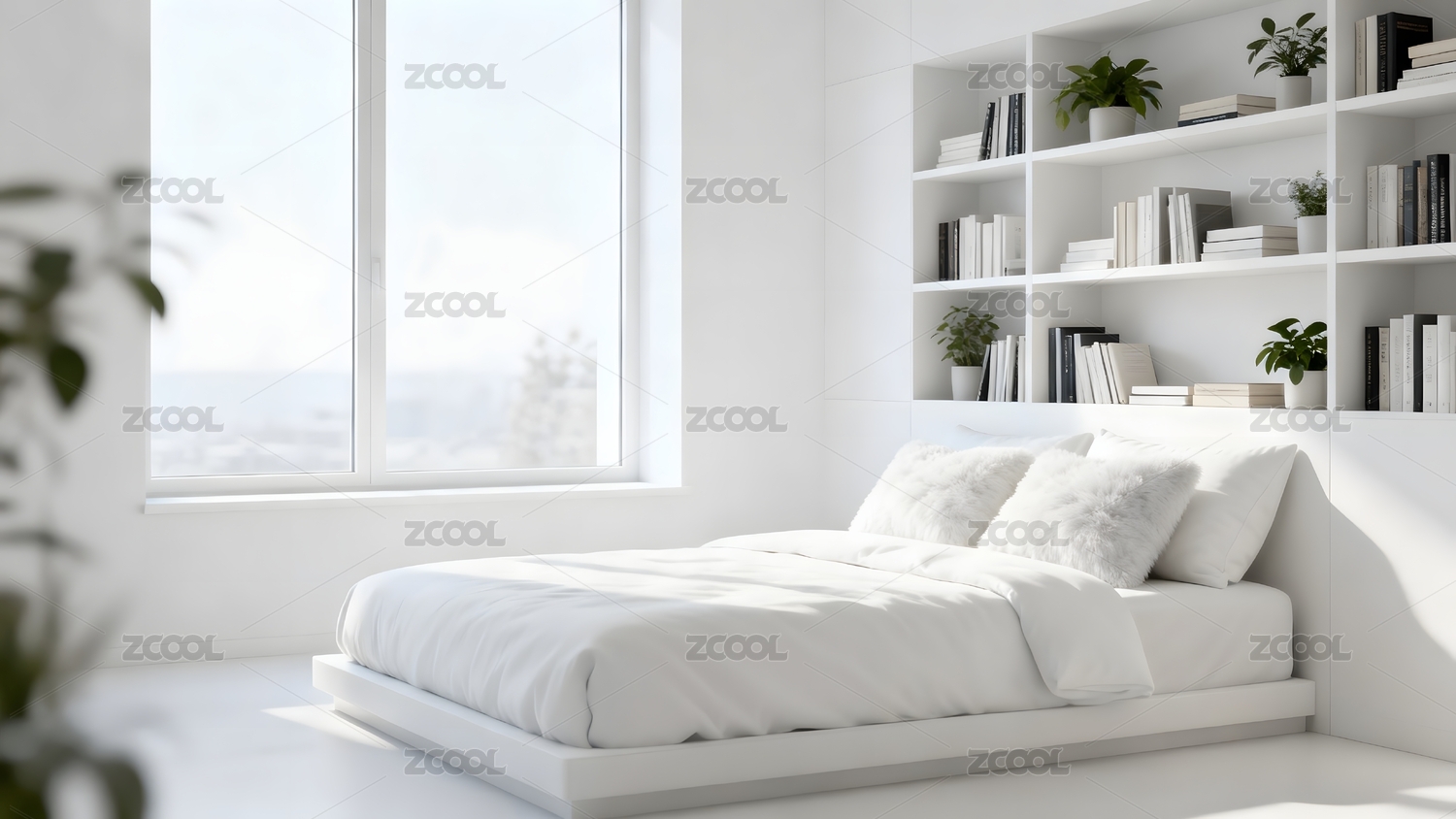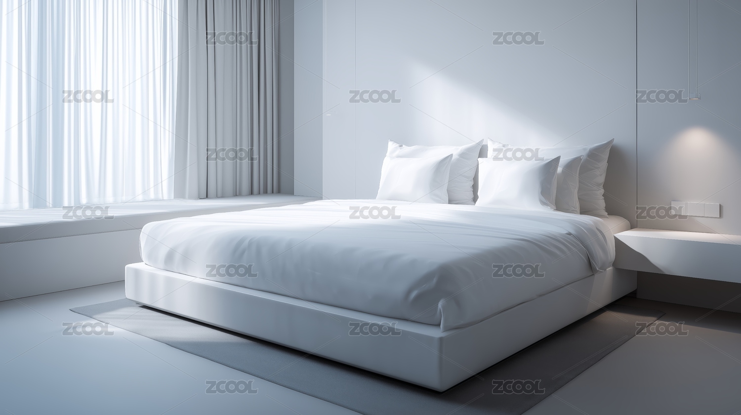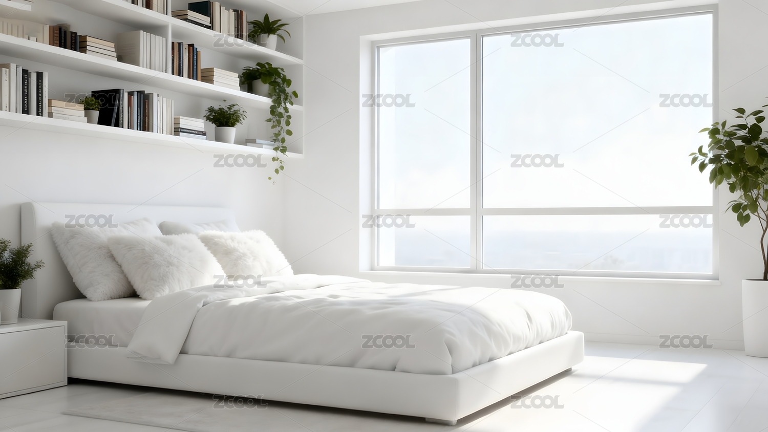 平台床,中性色,大窗户,现代,创意,家居,房屋,景观,城市,极简