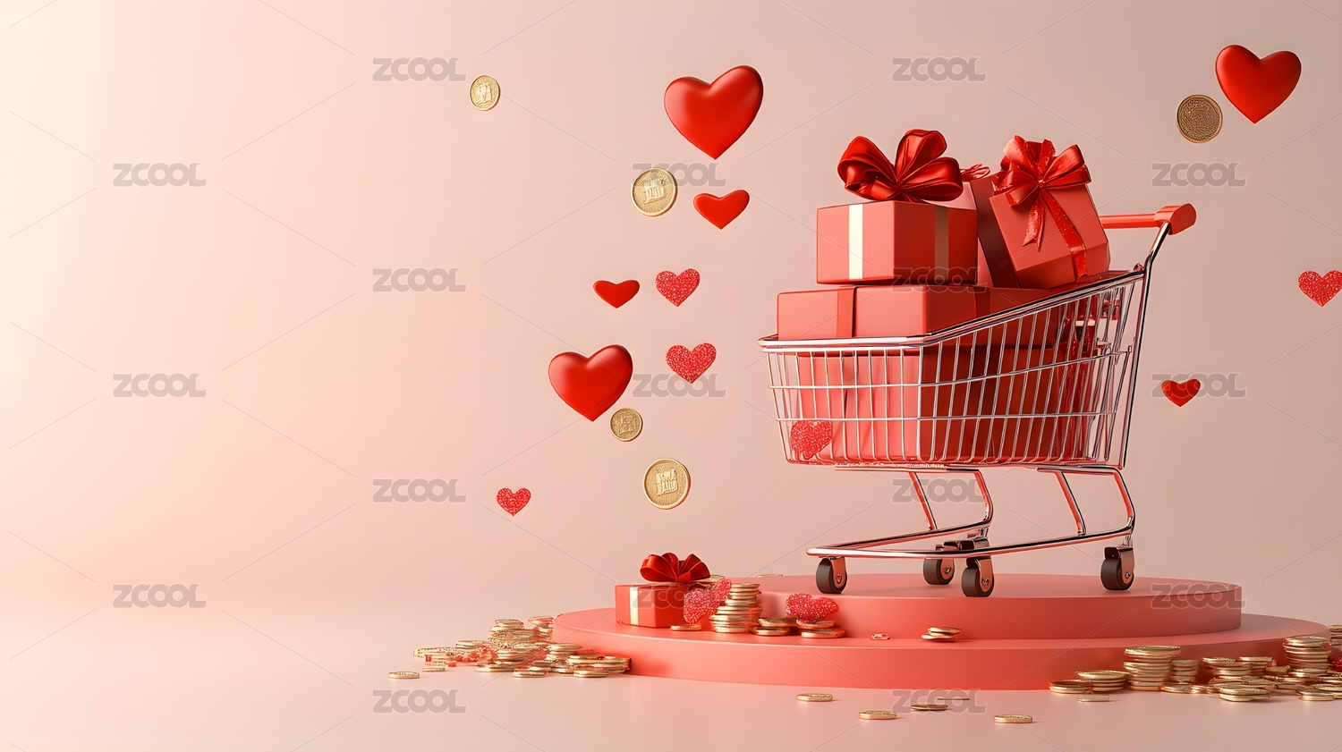 红色,节日,电商,购物,购物车,礼盒,盒子,丝带,爱心,浪漫