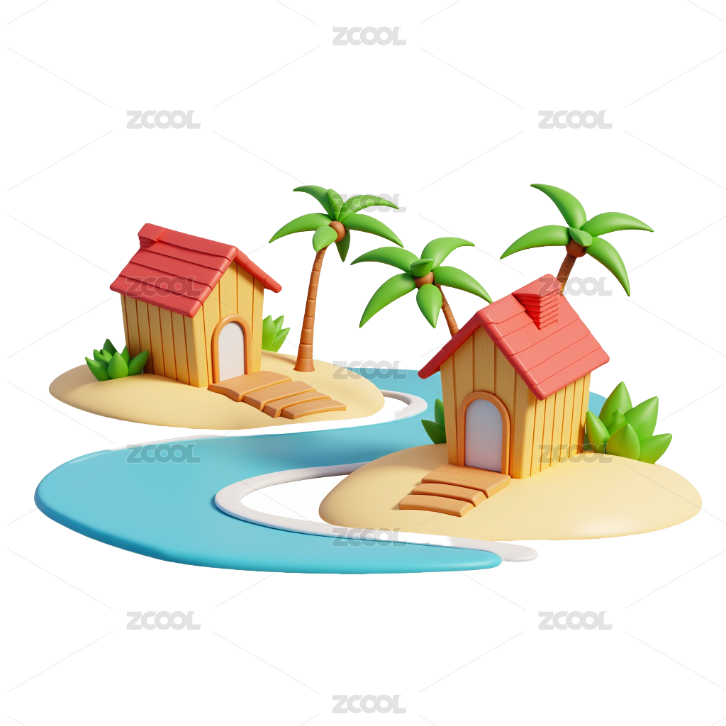 3D卡通梦幻海岛度假小屋