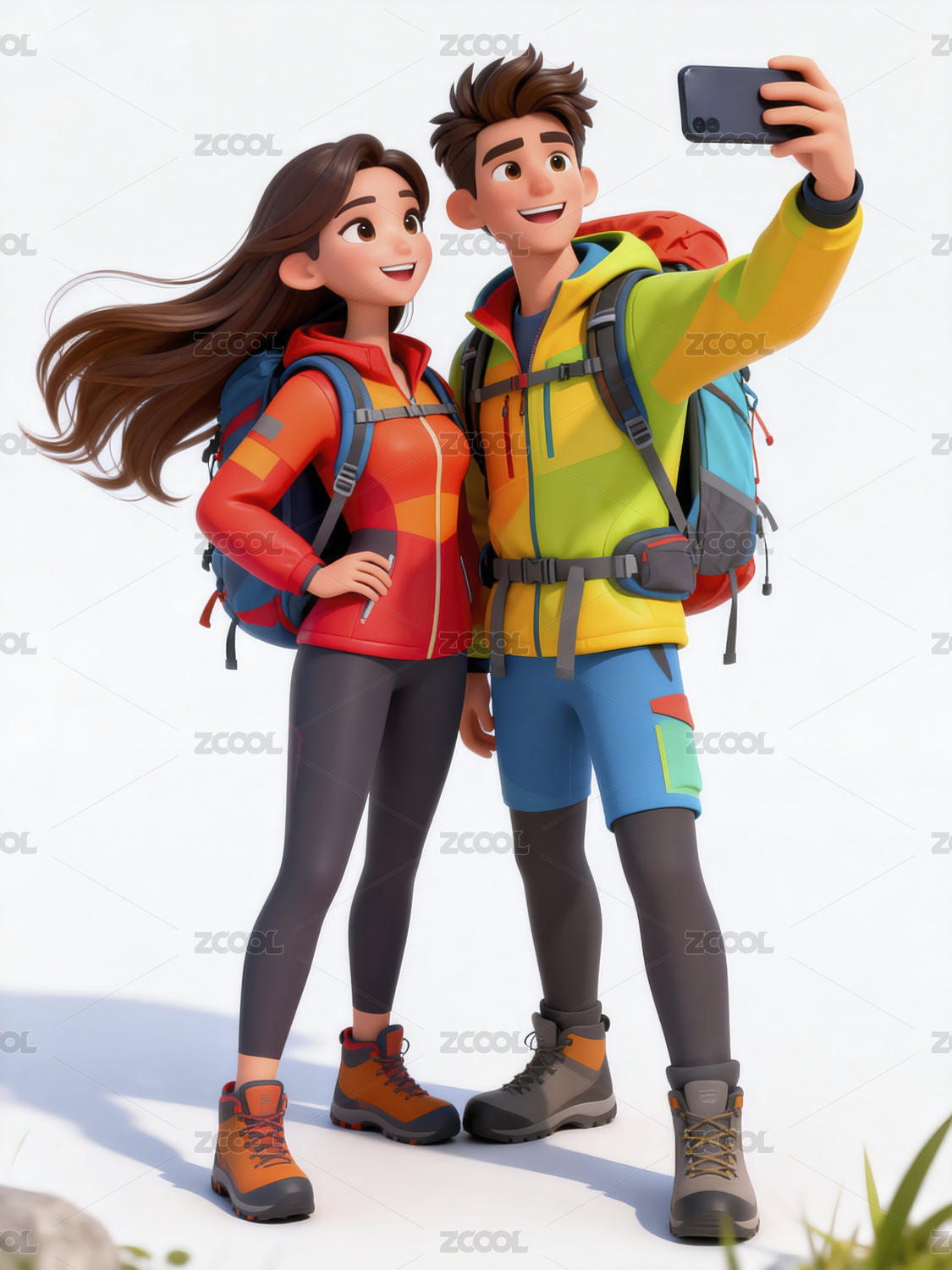 3D出游游玩的情侣插画