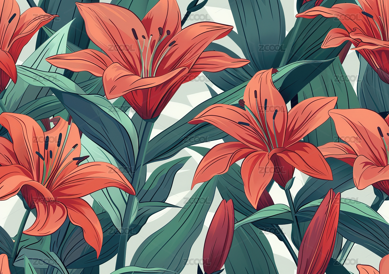 清新优雅的百合花图案