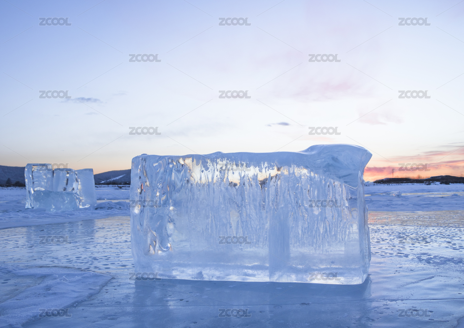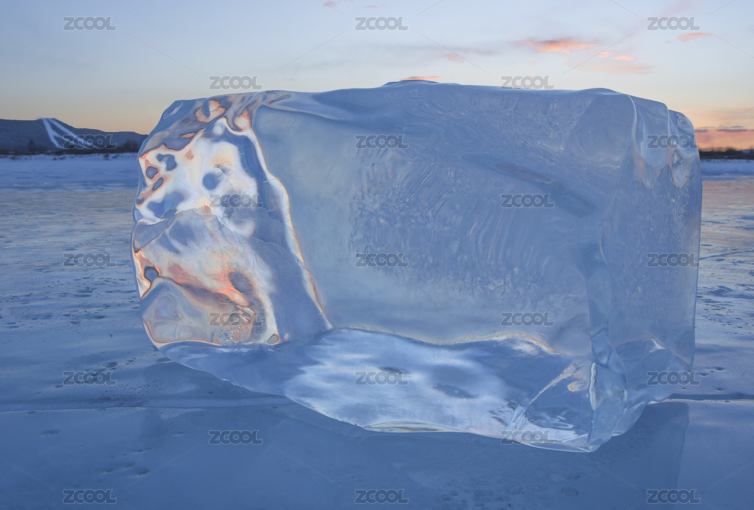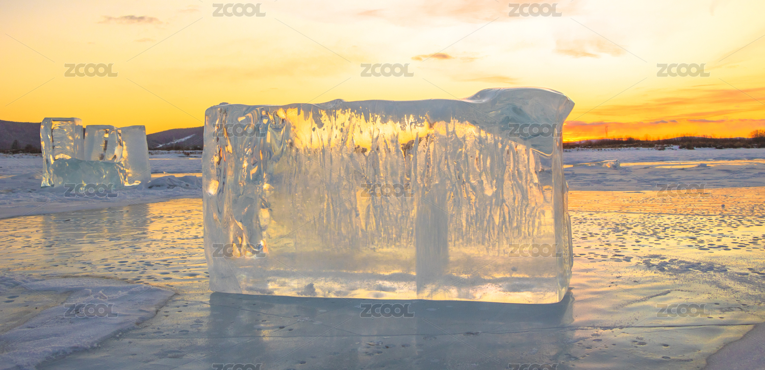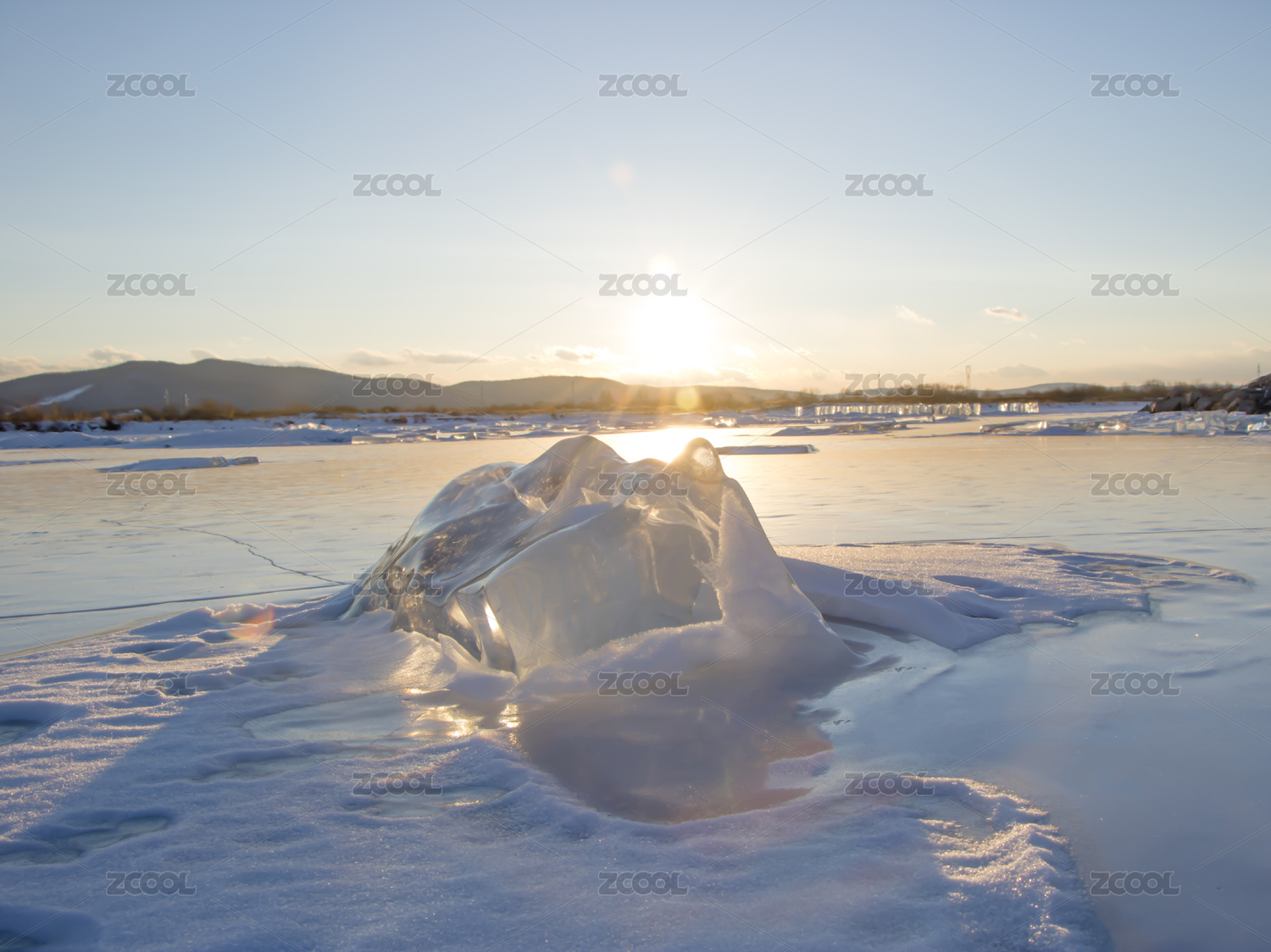 中国内蒙古自治区大兴安岭加格达奇区甘河上的冰块霞光