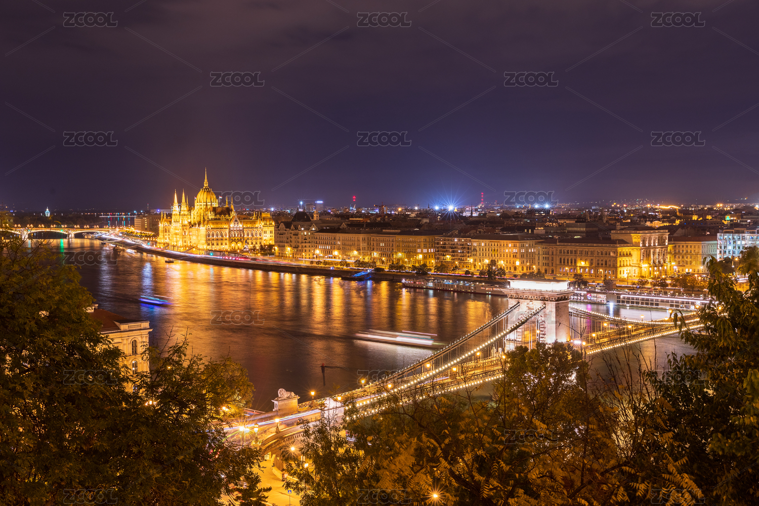 布达佩斯,多瑙河,夜景,暖色调,灯光,城市,城市夜景,塞切尼链桥,桥,运河