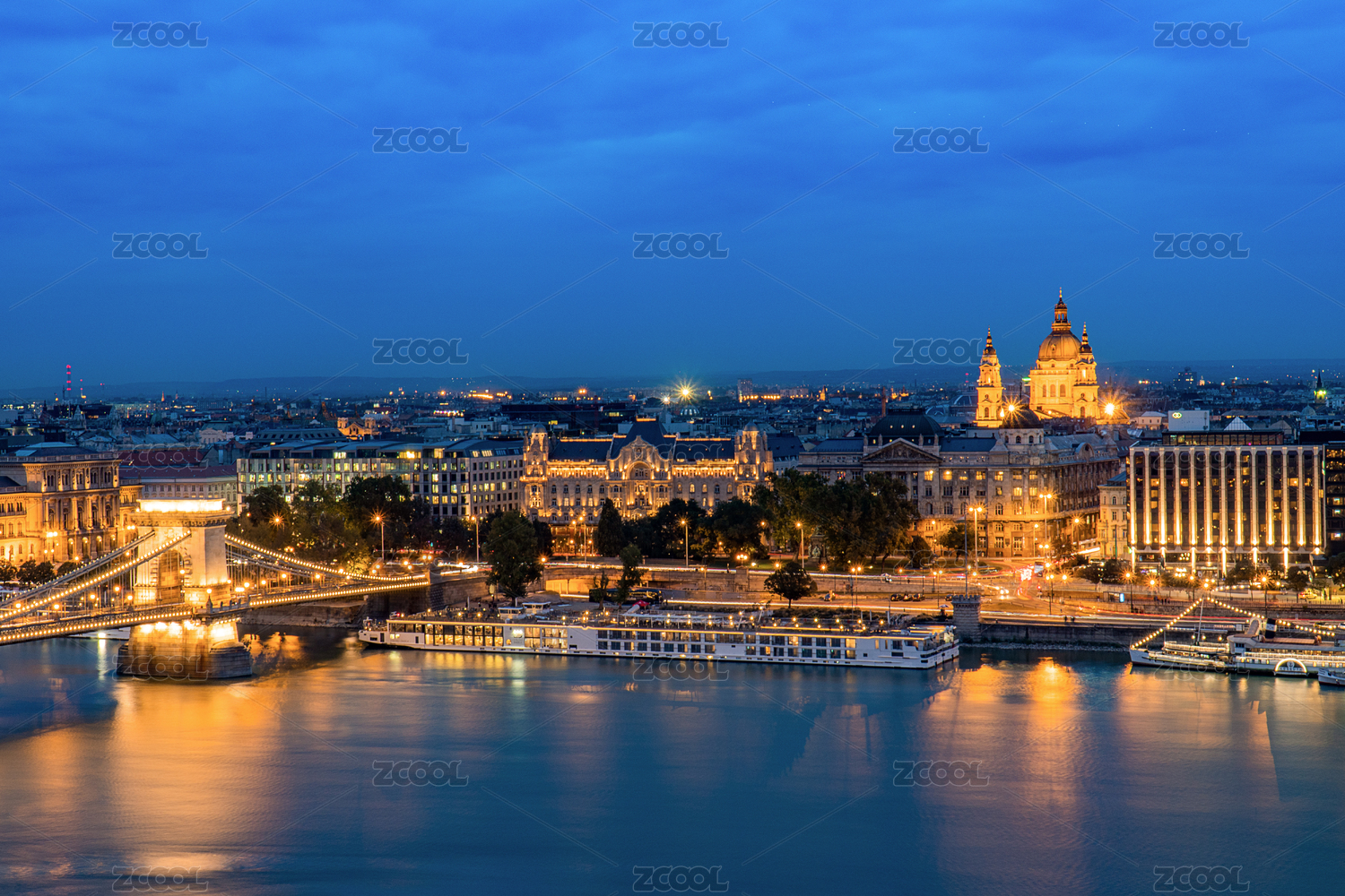 欧洲匈牙利首都布达佩斯塞切尼链桥夜景