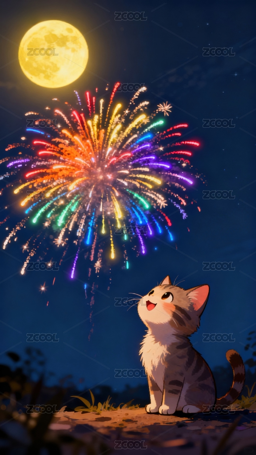 老虎,虎年,虎,小老虎,节日,烟花,卡通,插画