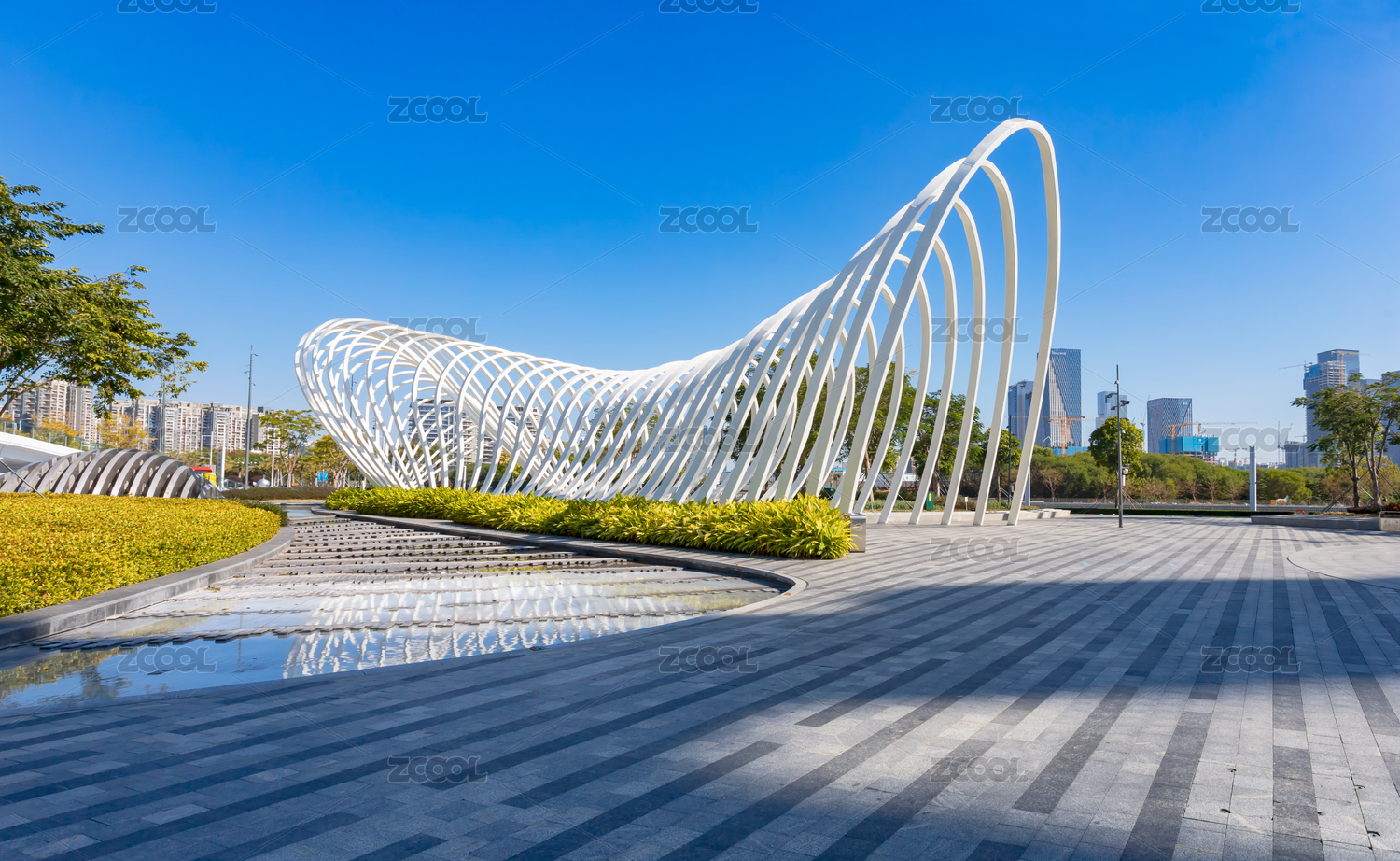 深圳欢乐港湾海边白色镂空结构建筑景观