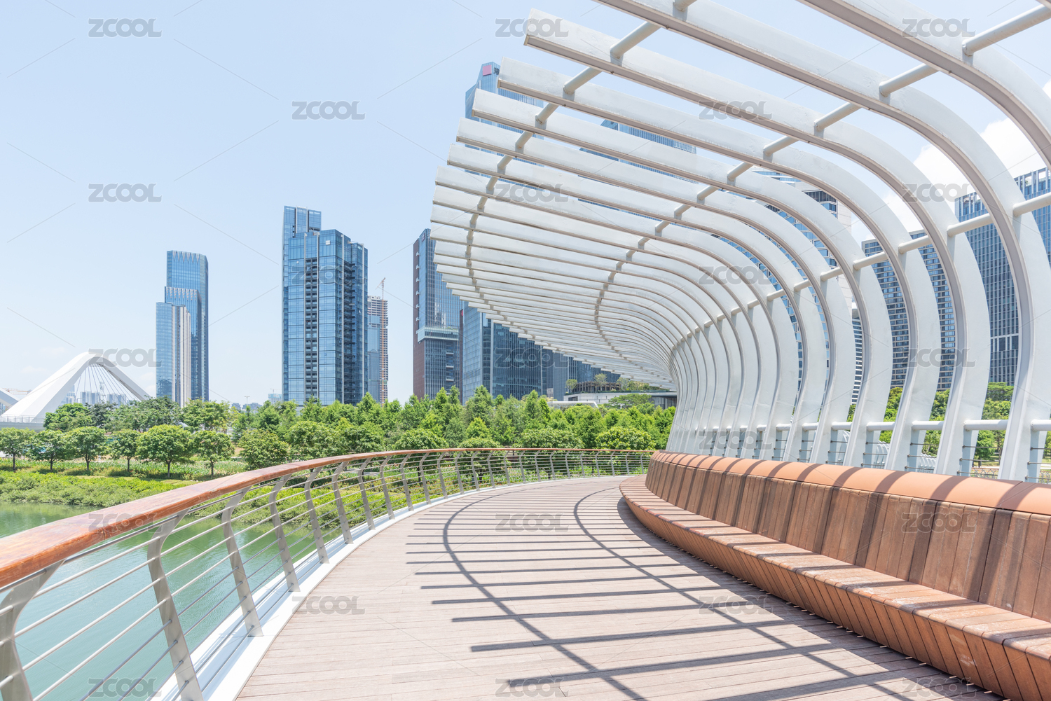 中国广州市南沙区蕉门河人行天桥建筑风光
