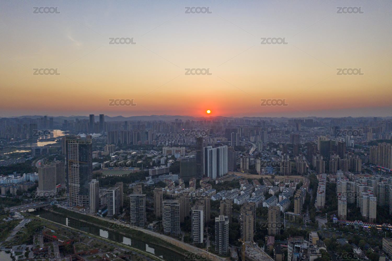 浙江省杭州拱墅区朝晖地区城市夕阳风光