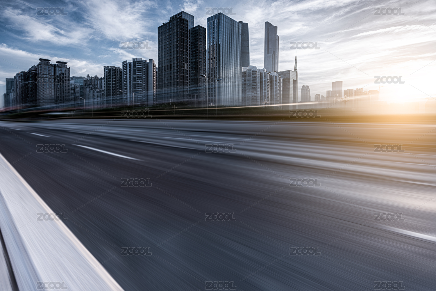 抽象的现代城市建筑和空旷的高速路面