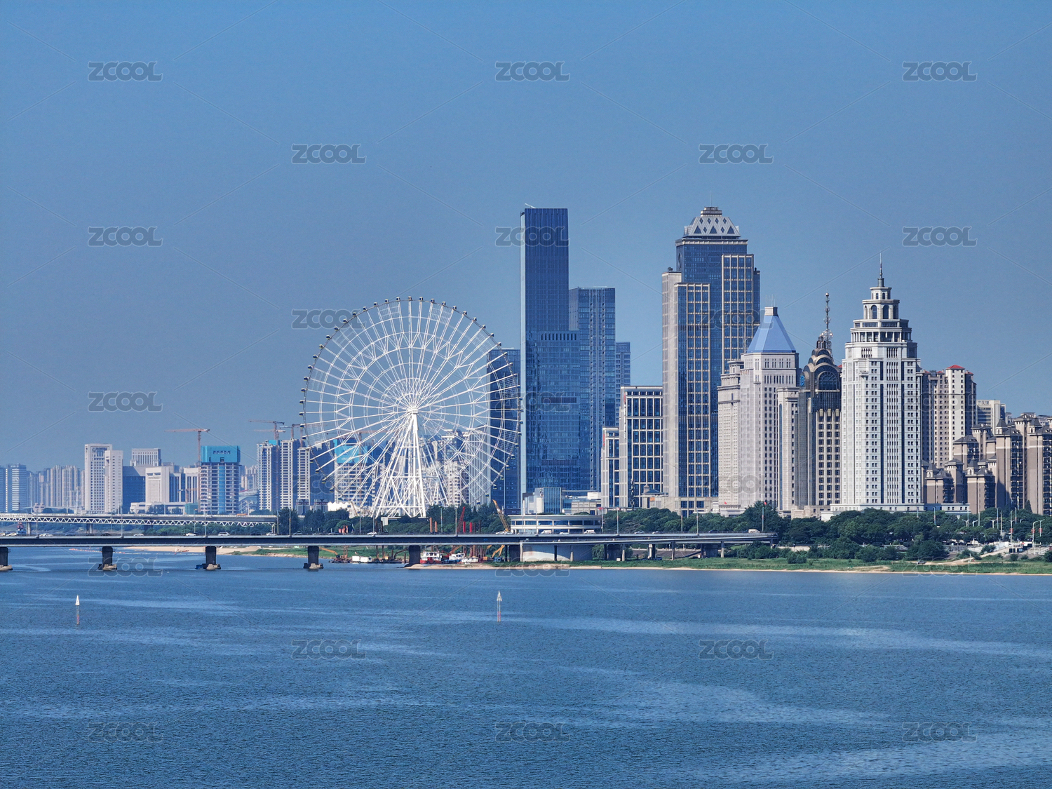 中国江西省南昌市赣江沿岸的城市建筑天际线