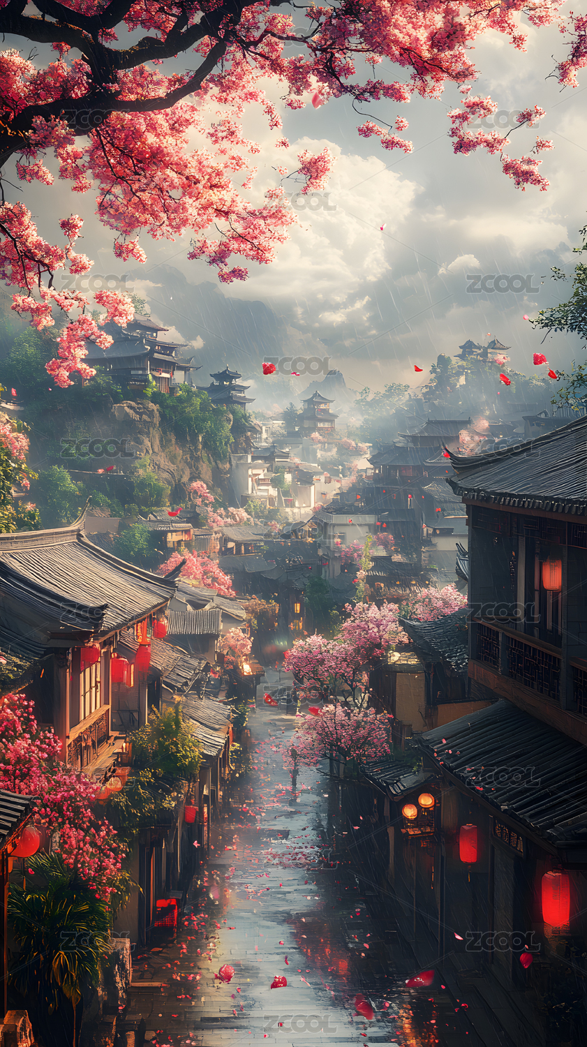 古村,徽派建筑,清晨,薄雾,春天,古镇,江南,传统建筑,中国风,宁静