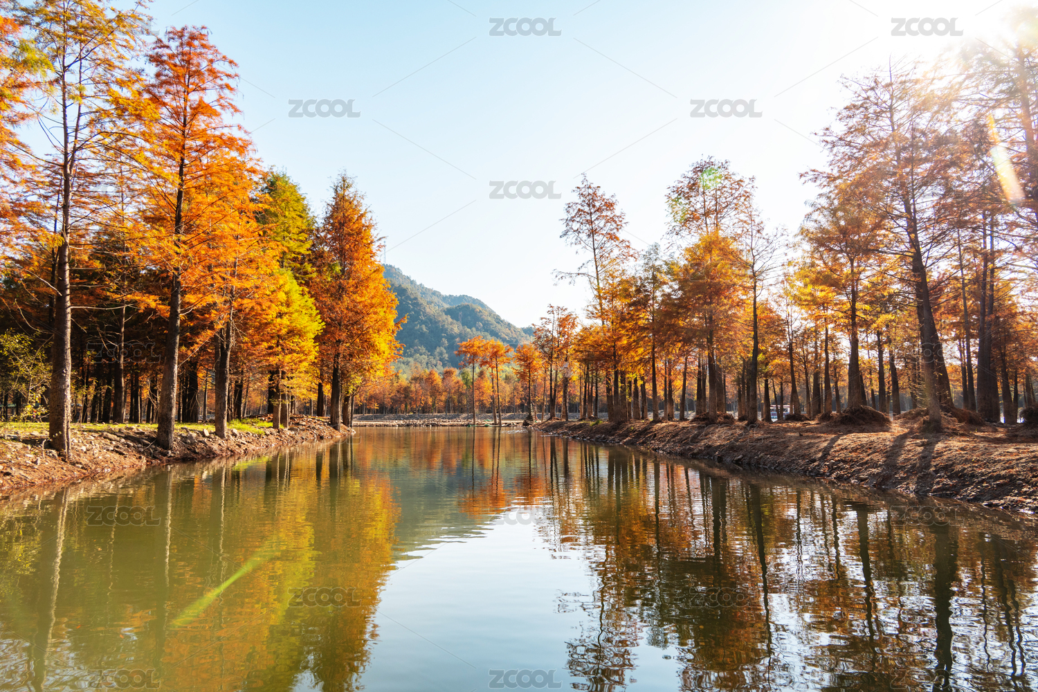 红杉树,秋色,湖面,水杉林,自然,秋天,树林,旅行,风光,倒影