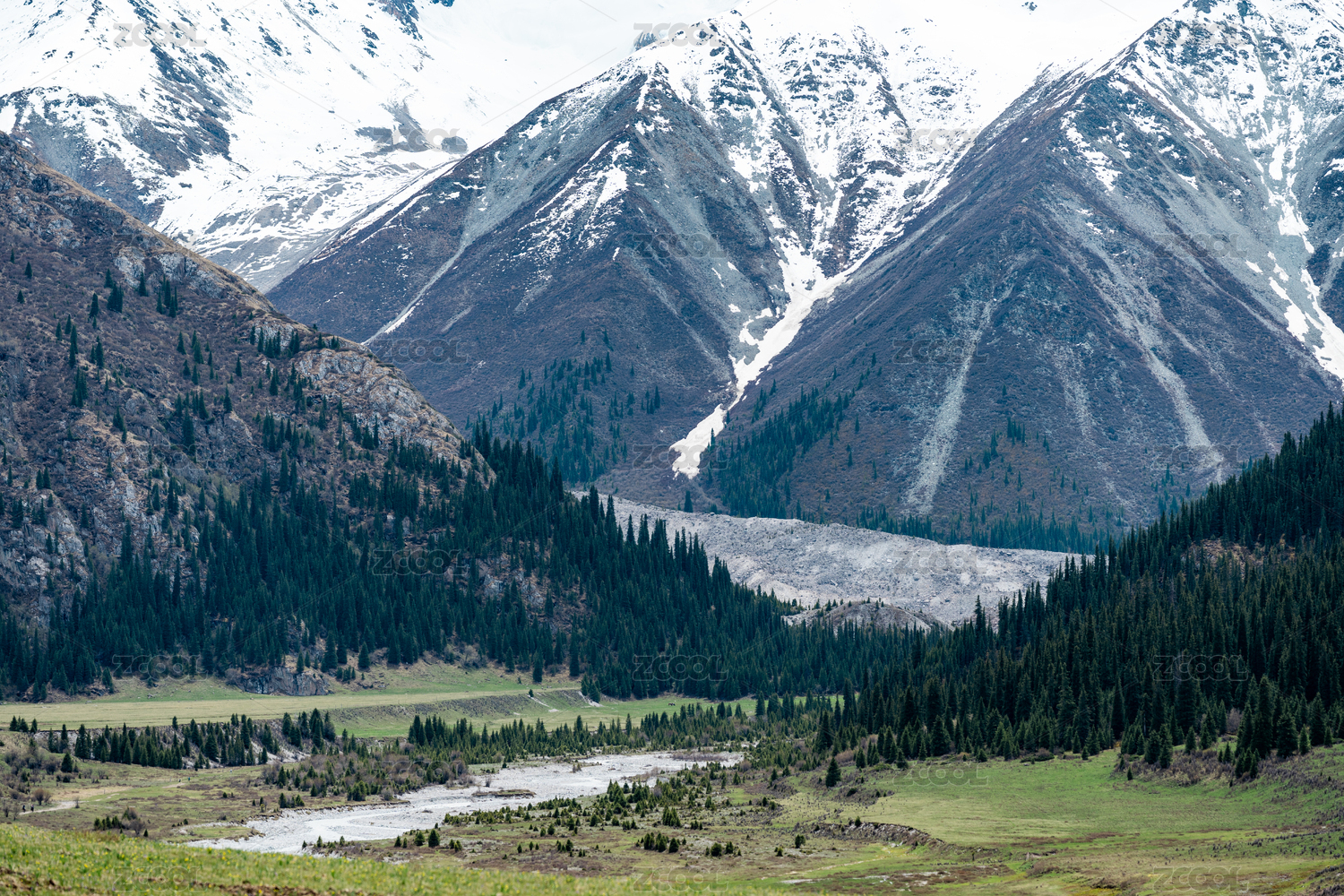 中国新疆伊犁夏塔雪山森林草原绝美风光