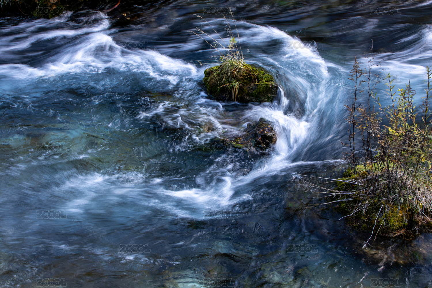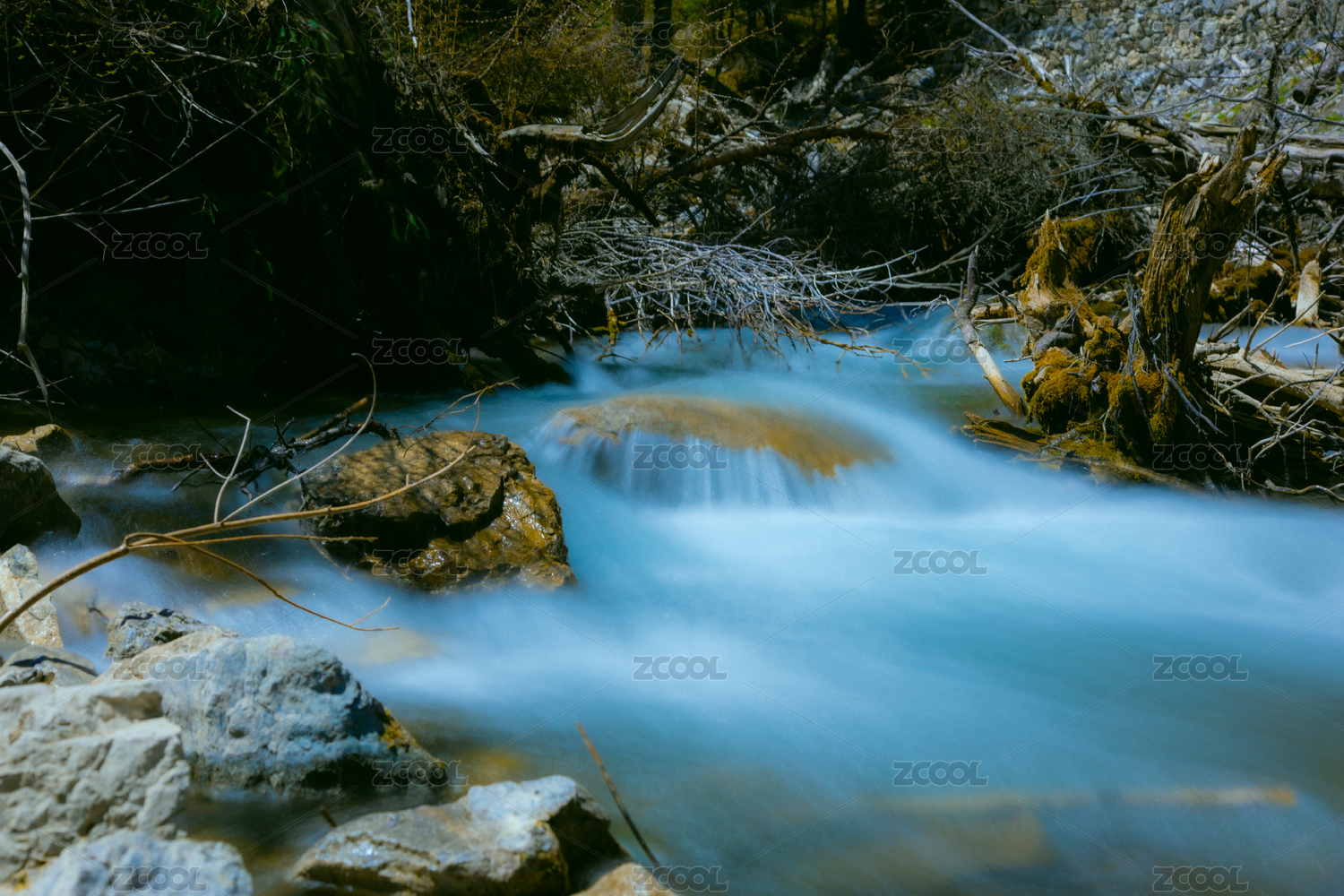 慢门拍摄的山涧溪流