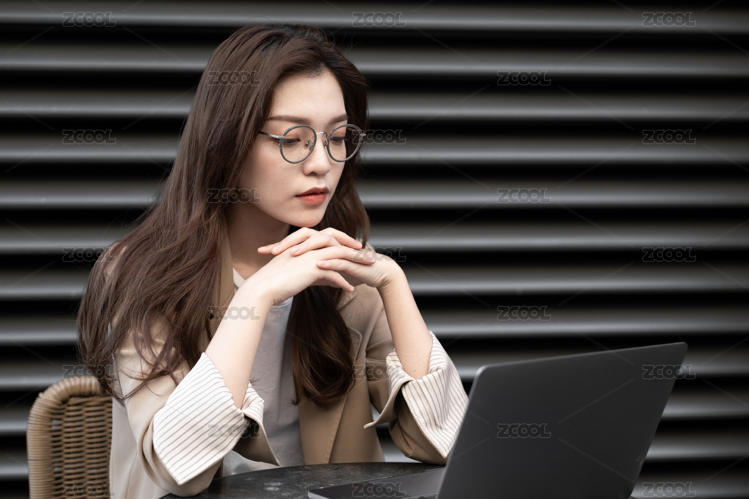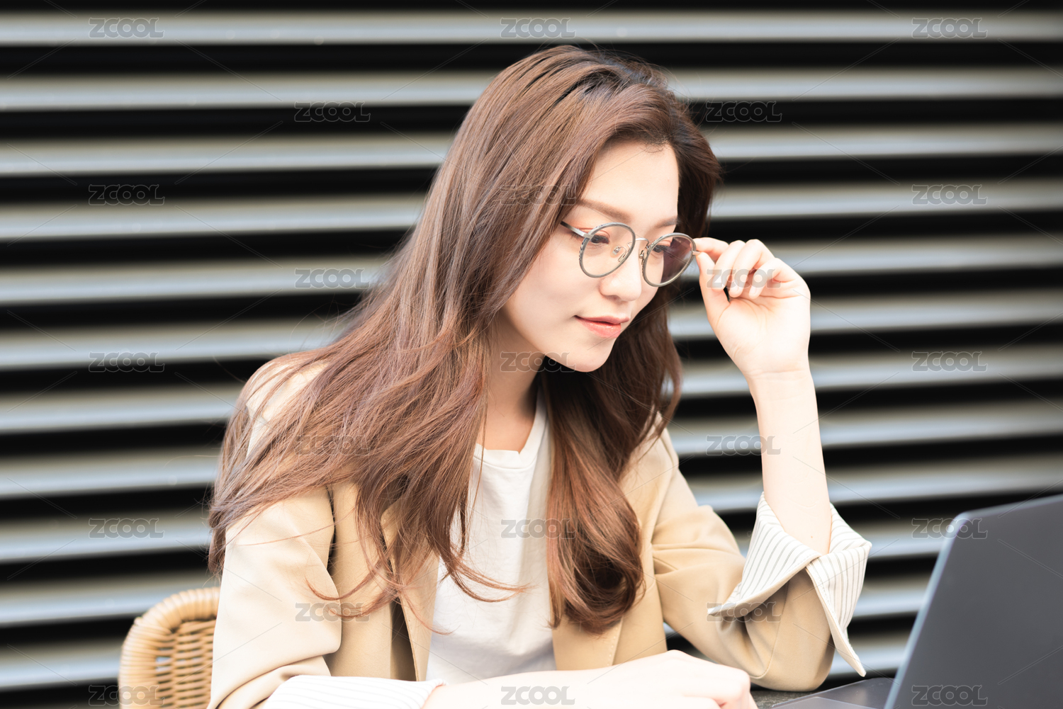 年轻女士在户外使用电脑办公
