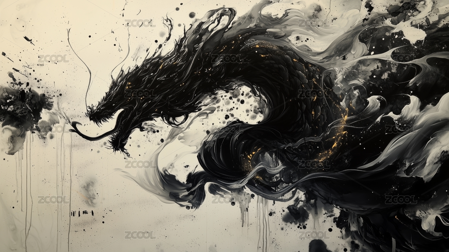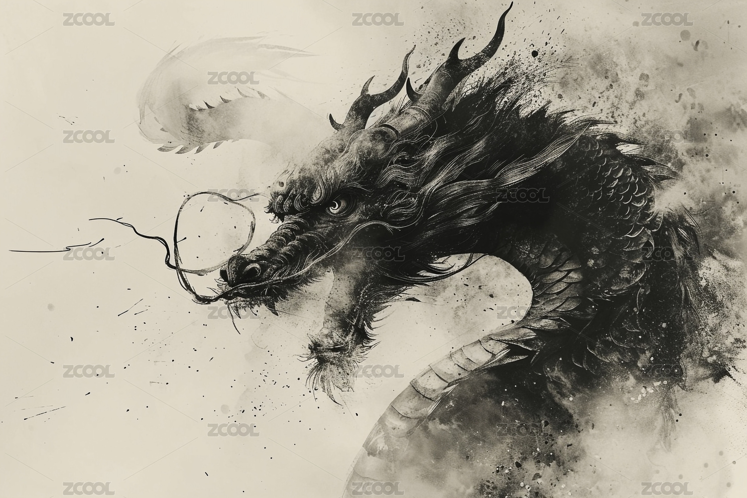城市,龙,树,墨水,黑白,光影,设计,鳞片,毛,眼睛