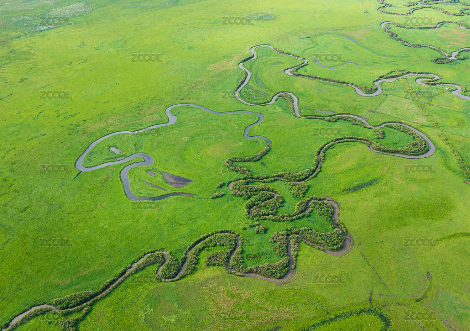 中国内蒙古锡林格勒盟乌拉盖大草原九曲弯