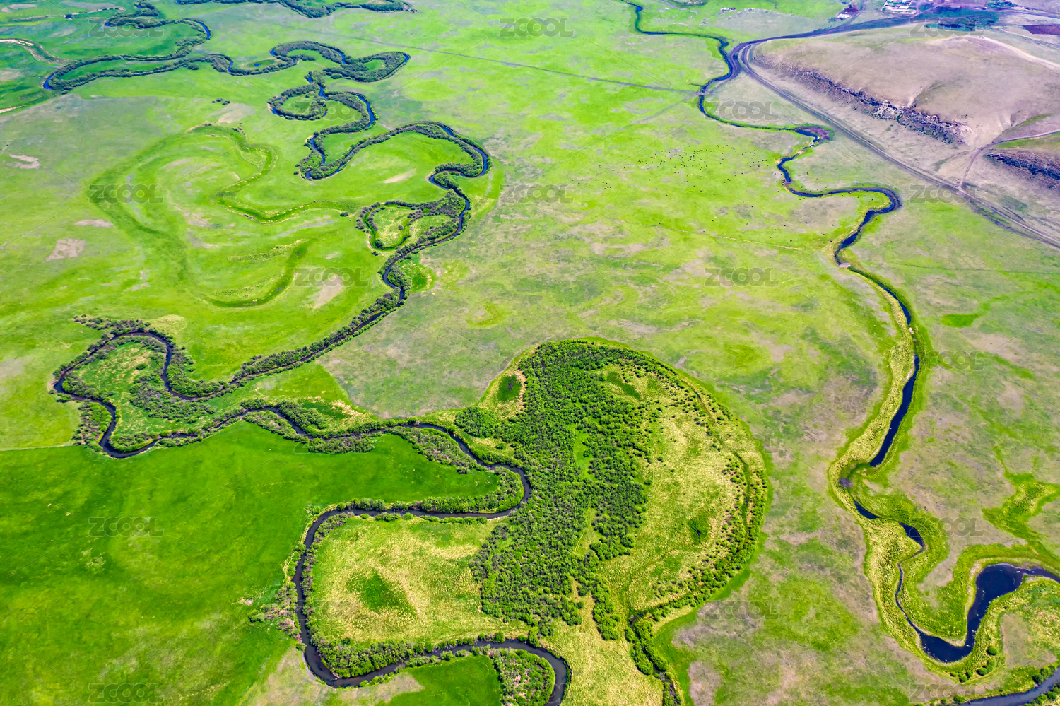 无人,自然,白昼,户外,航拍视角,河流,草原,云,天空,地形