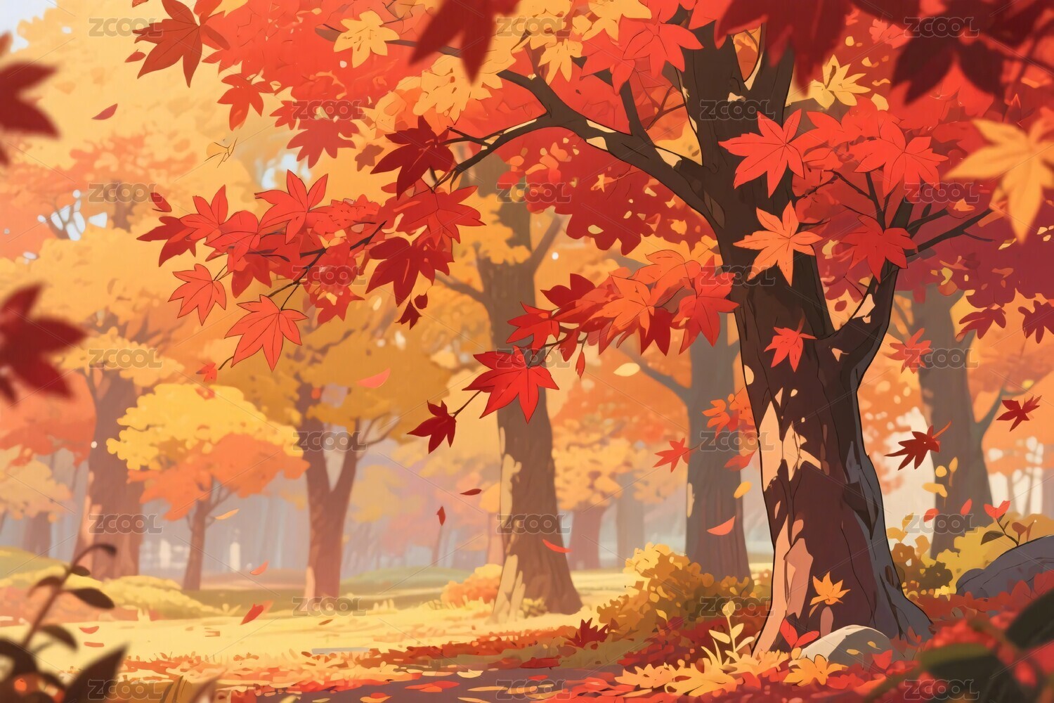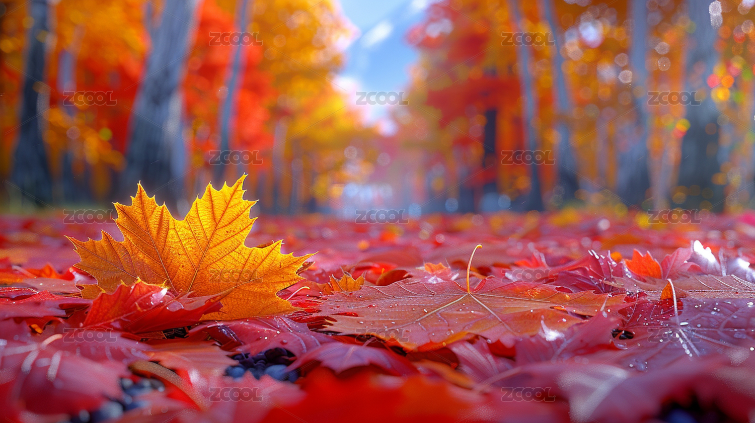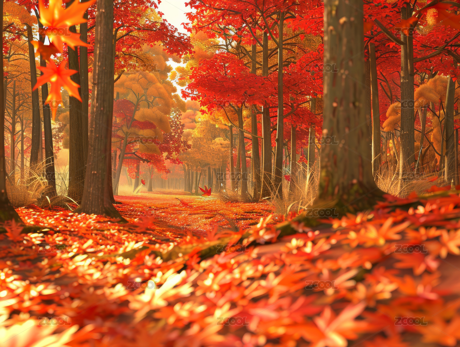 枫林秋景暖色户外自然场景