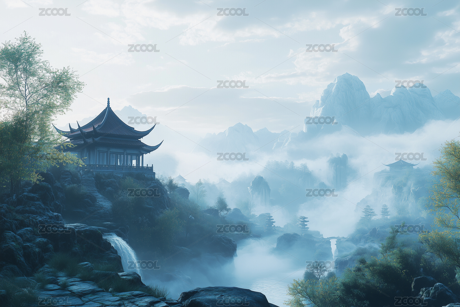 虚拟,古代,神话,场景,空旷,背景,幻想,神秘,传说,艺术
