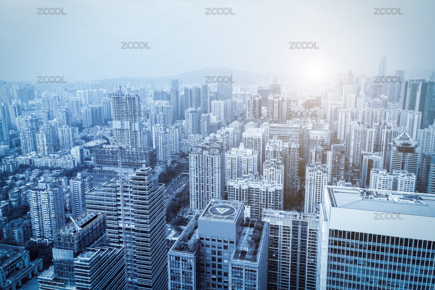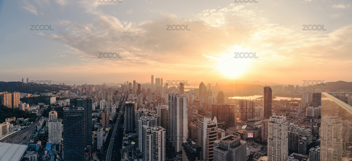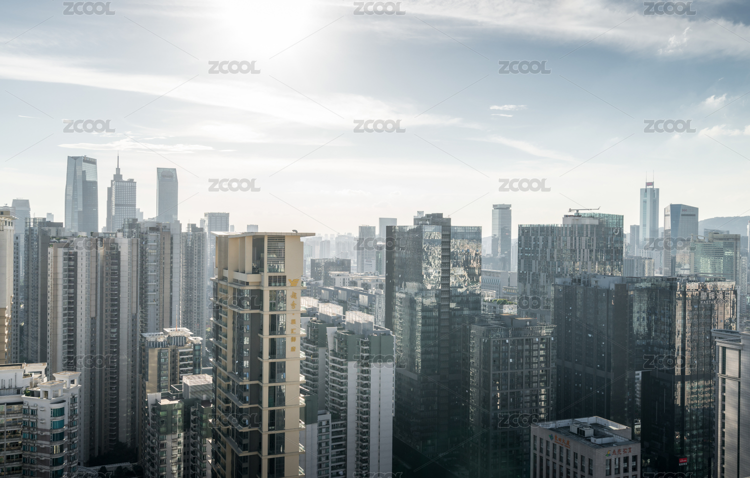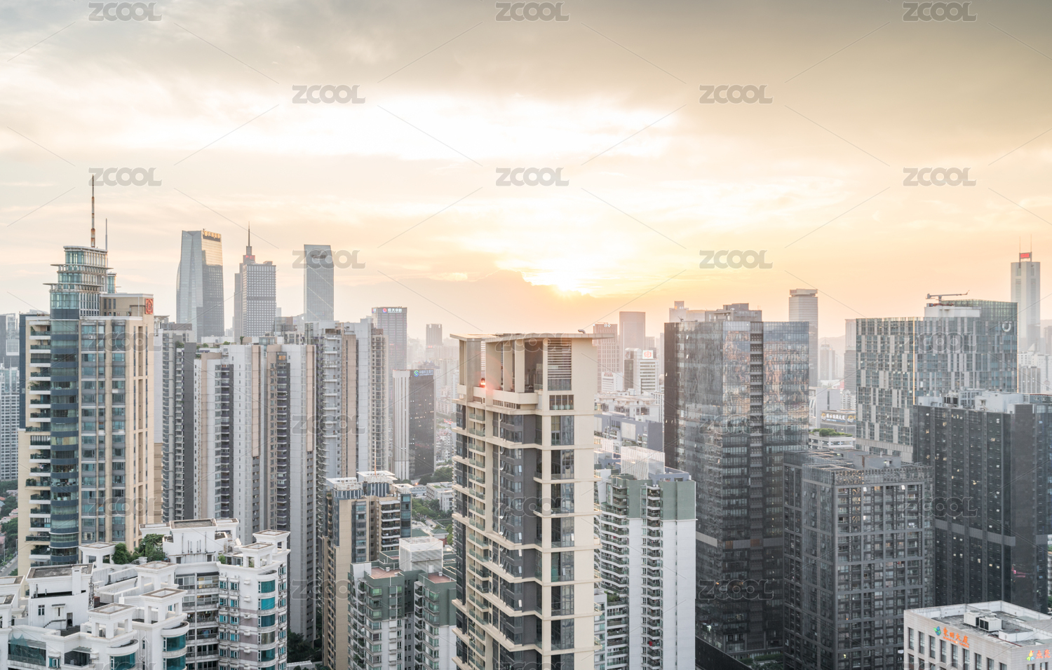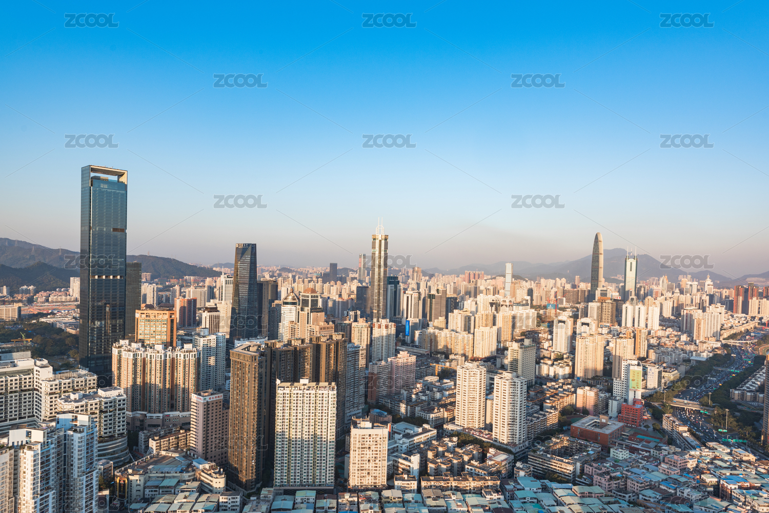 中国深圳傍晚时罗湖与南山的高楼天际线风光