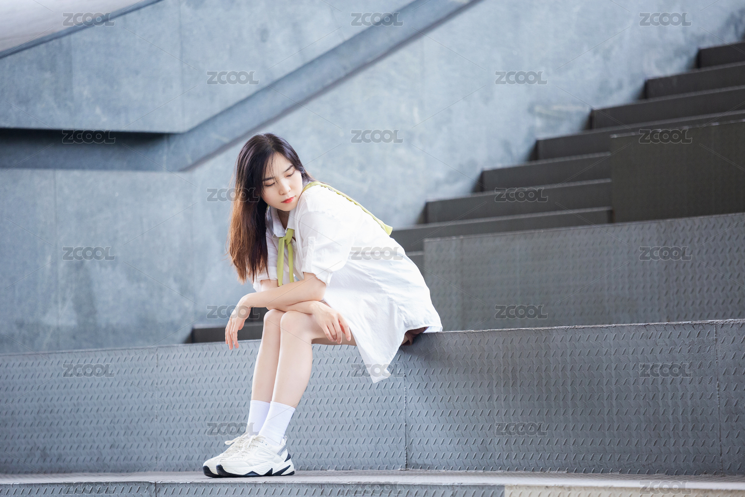 中国人,亚洲人,阶梯,年轻,女生,女性,女人,女士,美女,坐