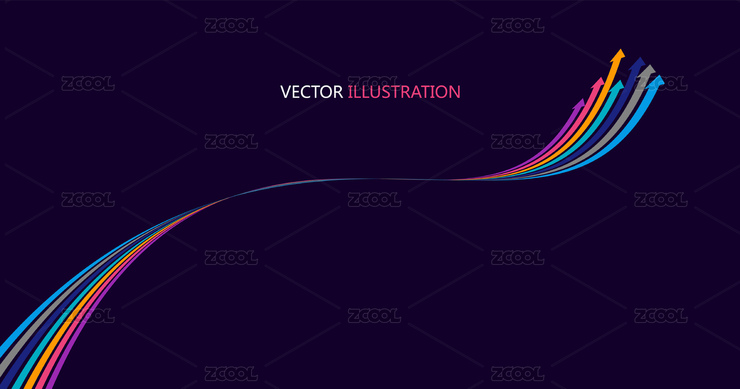 彩色动感线条、透视图形、彩色丝带、矢量流线图、海报背景图。