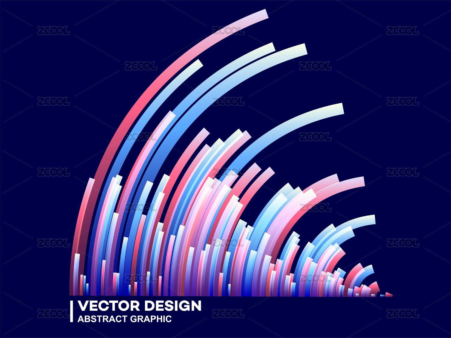 彩色动感线条、透视图形、彩色丝带、海报背景图。