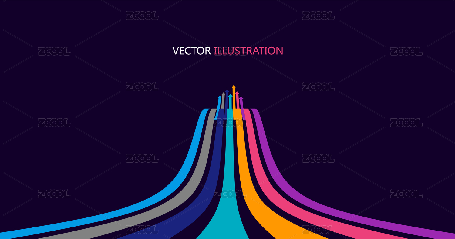 矢量的彩色线条组成的方向标、象征积极向上的海报。